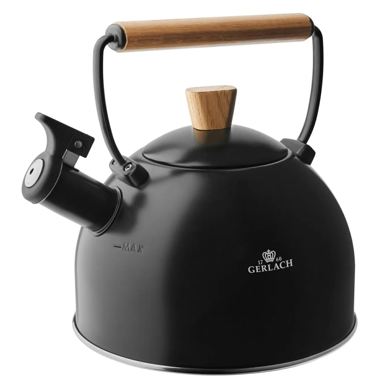 Elegancki czarny czajnik NATUR z dębową rączką uzupełni nowoczesną kuchnię. Jest wykonany ze stali nierdzewnej, dzięki czemu jest odporny na zarysowania oraz odkształcenia. Będzie Ci służył przez wiele lat.