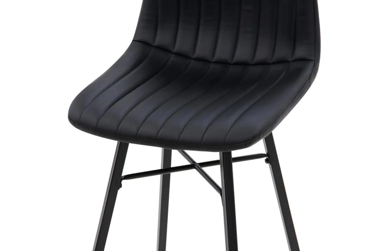Krzesło obite jest czarną ekologiczną skórą.