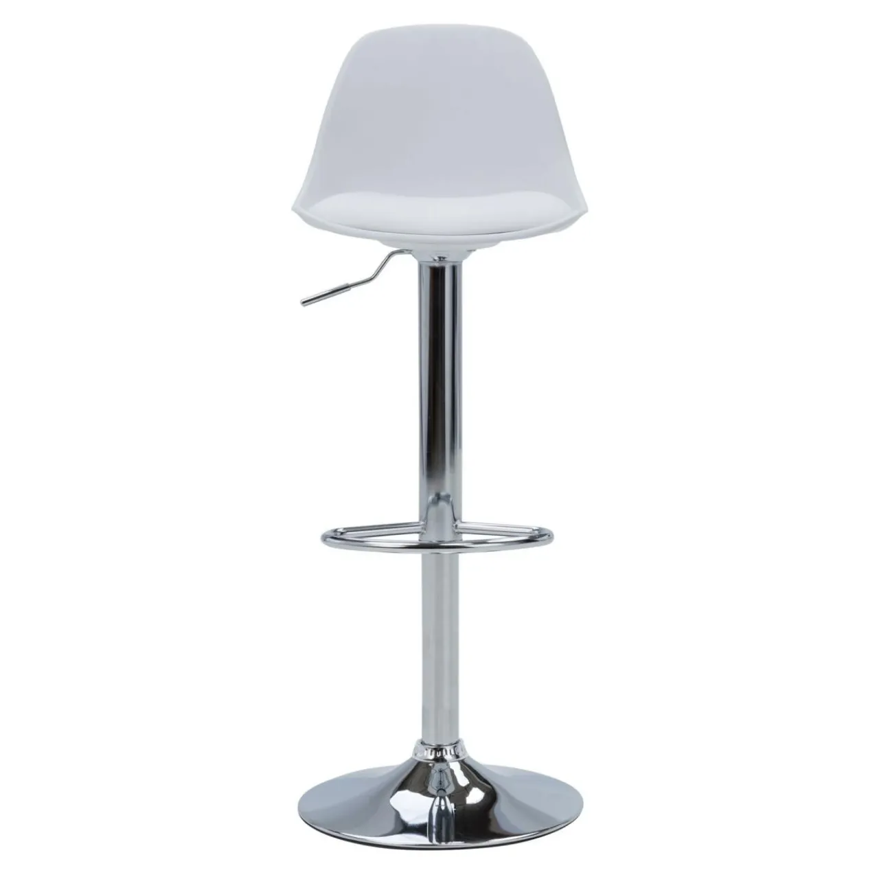 Krzesło barowe GRINNA dodaje klimatu w każdym eleganckim barze, a domowym wnętrzom nada prawdziwie klubowy charakter. Dzięki estetycznemu połączeniu chromowanego metalu z białą skórą ekologiczną, możesz je wkomponować w industrialne aranżacje.