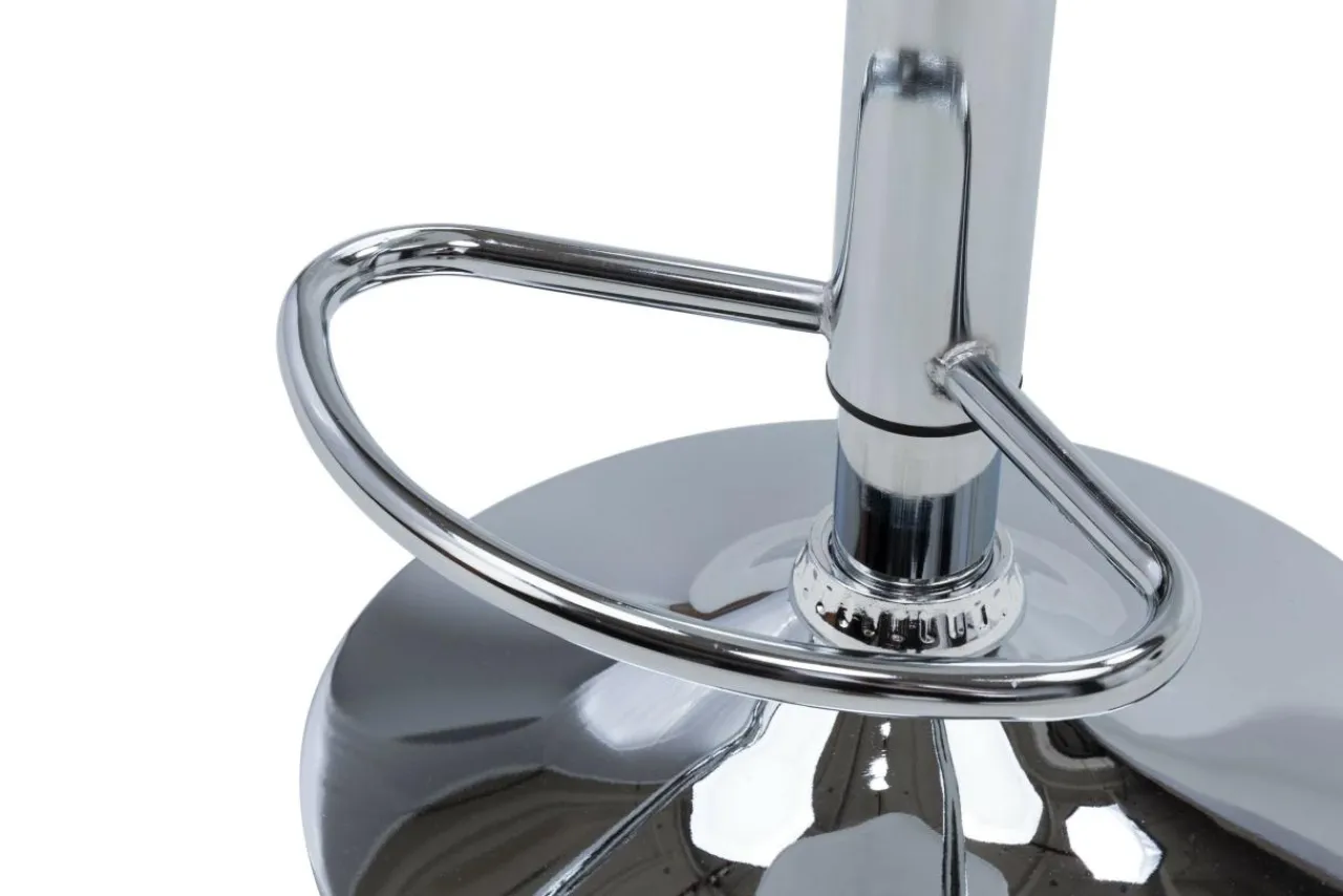 - Siedzisko wykończono białą skórą ekologiczną, która w połączeniu z połyskującą podstawą prezentuje się bardzo elegancko.