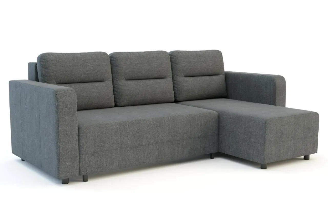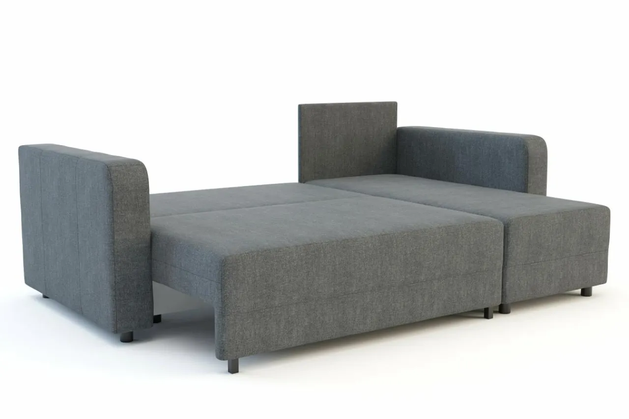 Narożnik posiada system rozkładania DL , dzięki temu rozłożysz go bez obaw o uszkodzenie podłogi. Wystarczy zdjąć poduchy, wysunąć siedzisko i złożyć zagłówek.