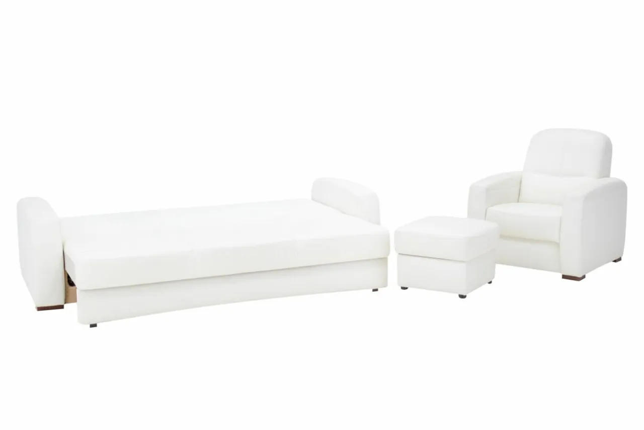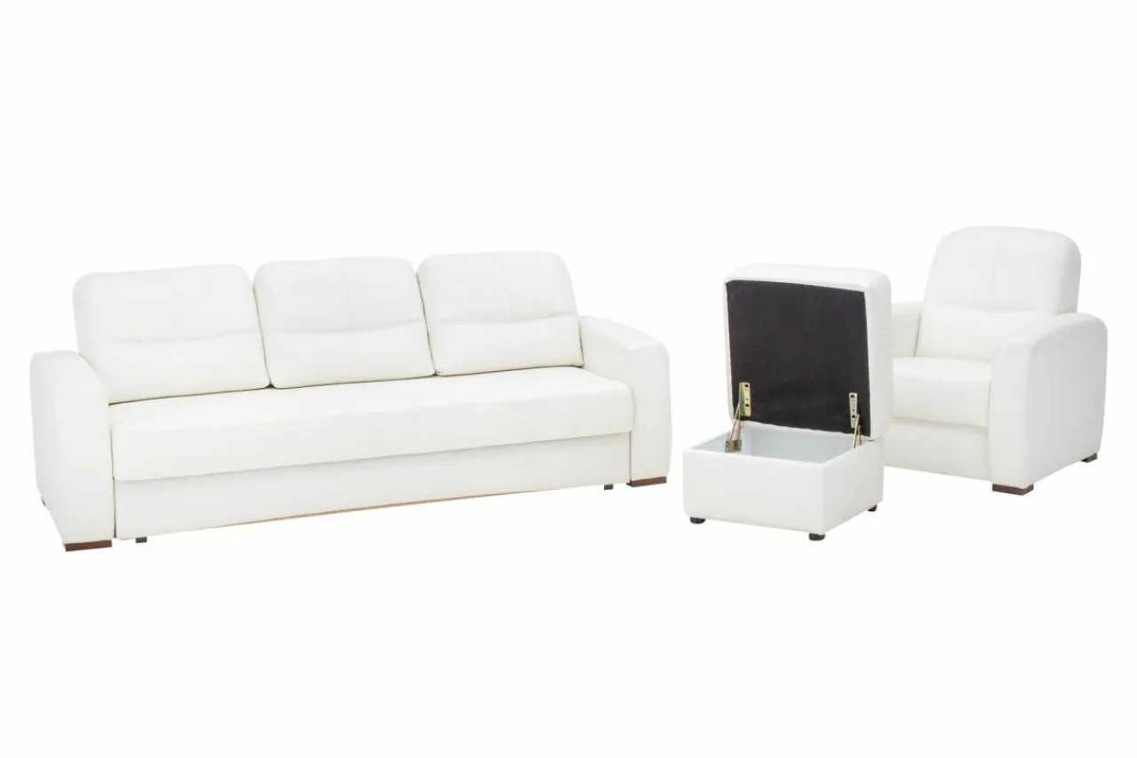 Komplet został wykonany w tzw. mixie. Najczęściej używane miejsca zostały pokryte skórą naturalną, natomiast miejsca niewidoczne skóra ekologiczną, co pozwoliło na obniżenie ceny. Dołączony do zestawu PUF jest otwierany, kryjąc pod siedziskiem całkiem pokaźny schowek.