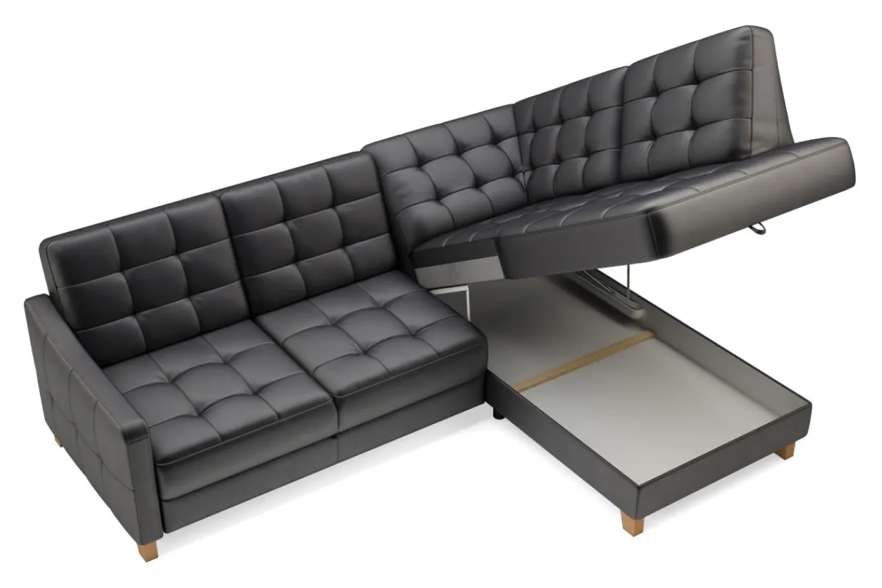 Narożnik można rozłożyć bez konieczności odsuwania go od ściany, dzięki łatwemu w obsłudze mechanizmowi – delfin.