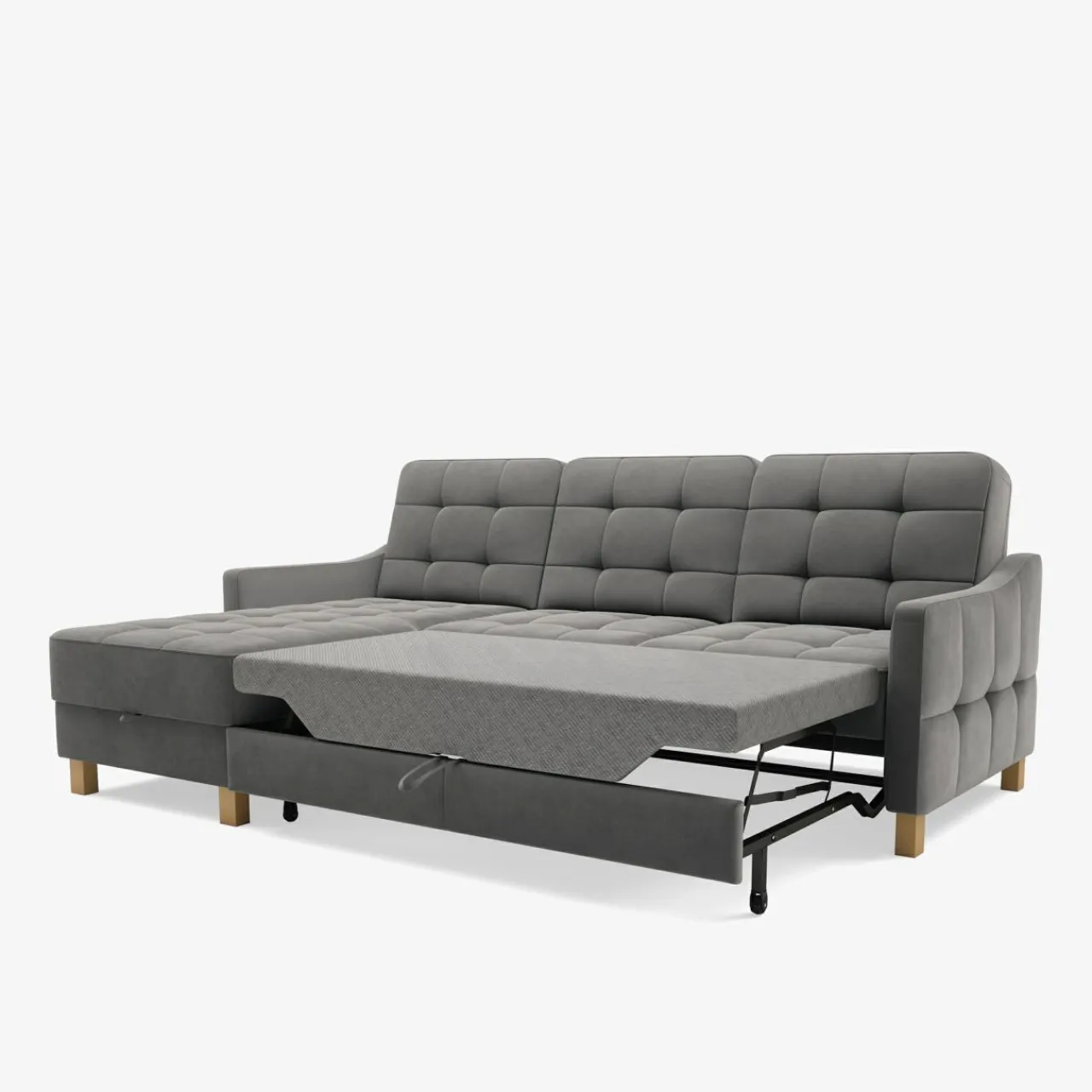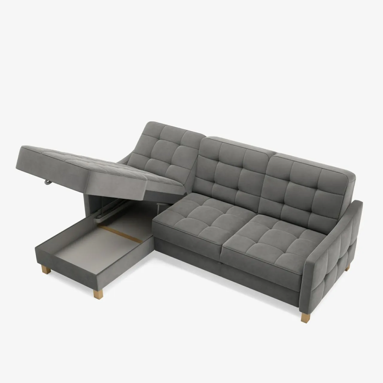 Funkcja spania nie wymaga odsuwania narożnika od ściany i jest łatwa w użytkowaniu.
