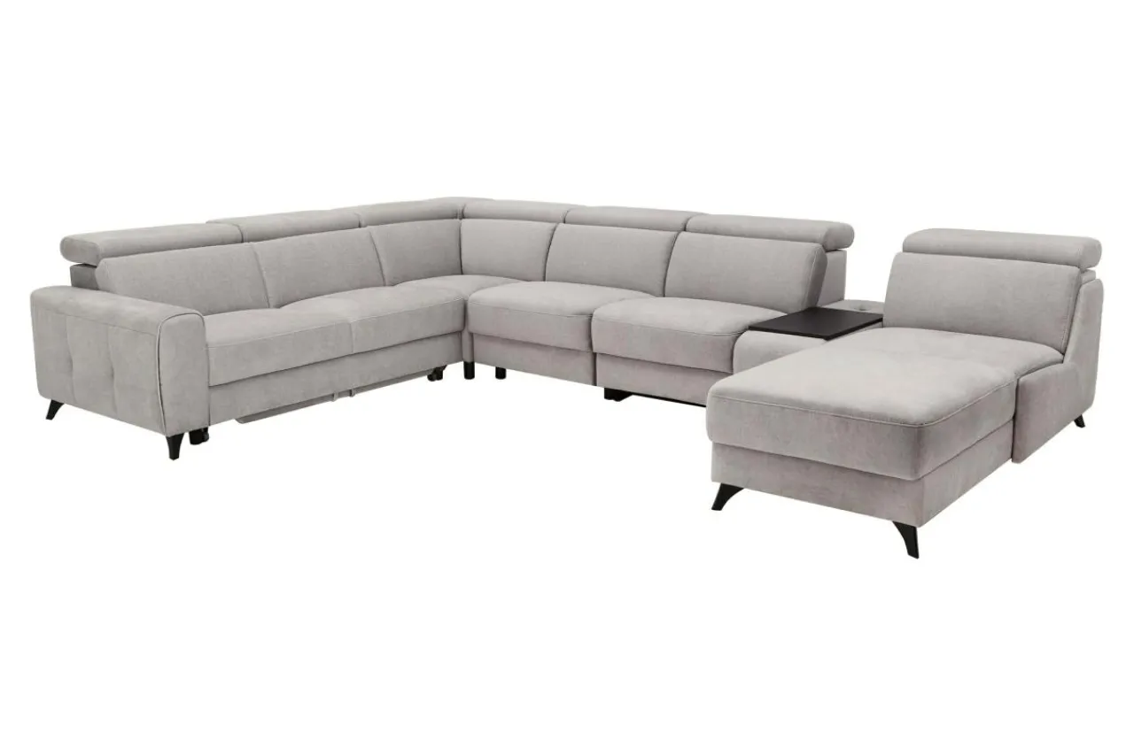 Wypróbuj go przy wspólnych seansach filmowych lub rodzinnych przyjęciach. Kształt litery U tworzy bryłę z trzech stron zamkniętą, w środku znajduje się jednak wystarczająco dużo przestrzeni na dostawienie niewielkiej ławy, bądź stolika kawowego.