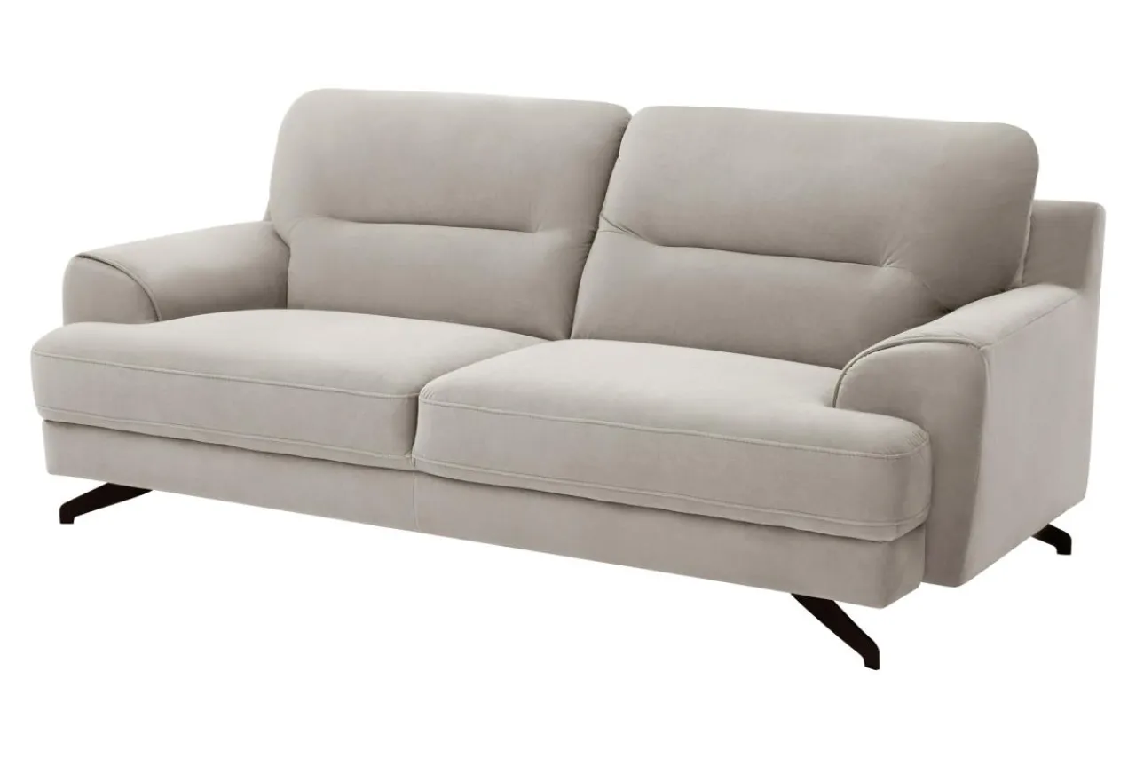 Do obicia mebla została wykorzystana tkanina SOLO – tkanina to bardzo przyjemny w dotyku, należący do grupy velvetów materiał pokryty specjalną apreturą utrudniającą wchłanianie rozlanych płynów do jej wnętrza i usuwanie plam na czas. Czarne, metalowe nóżki sofy nadają lekkości oraz ładnie dopełniają linię mebla.