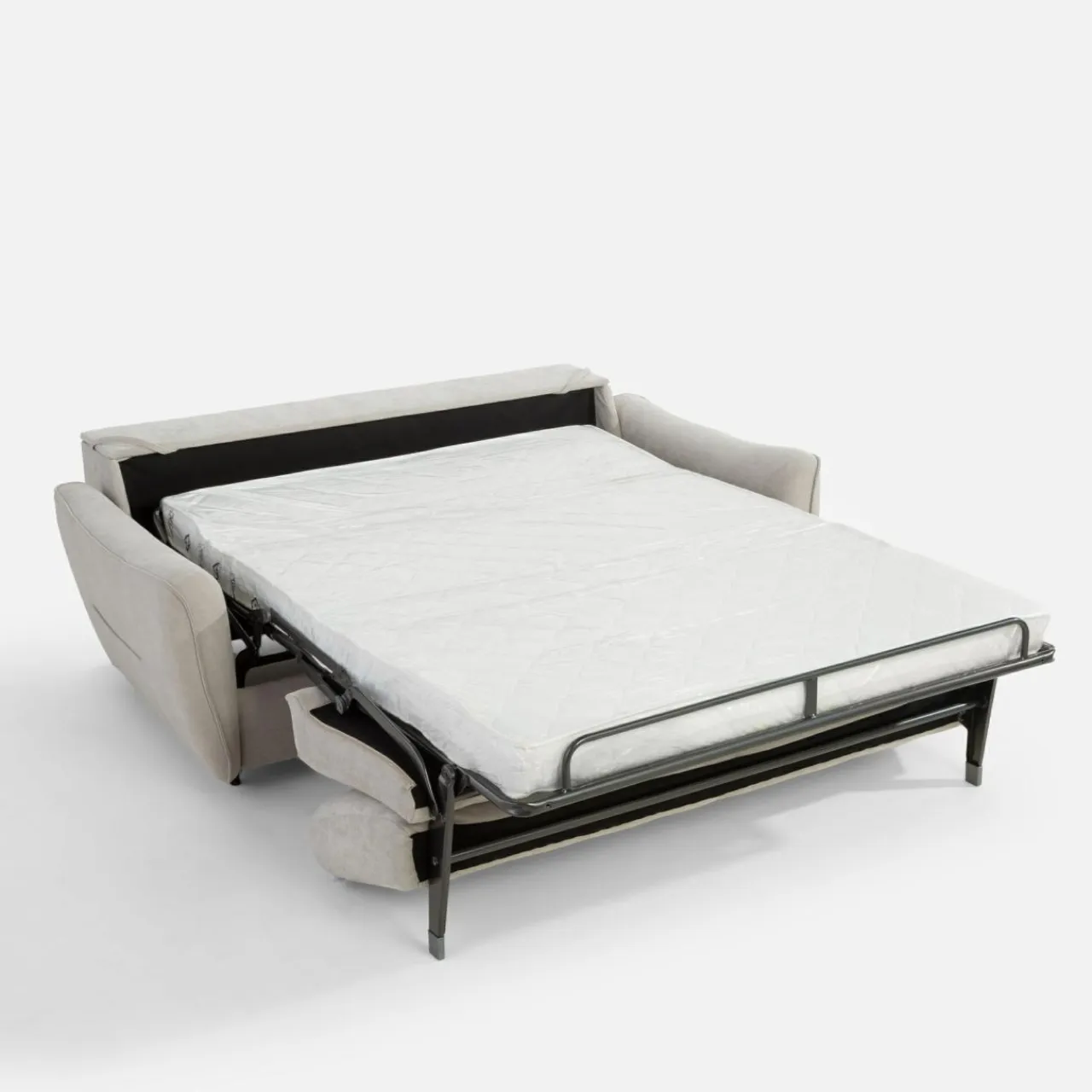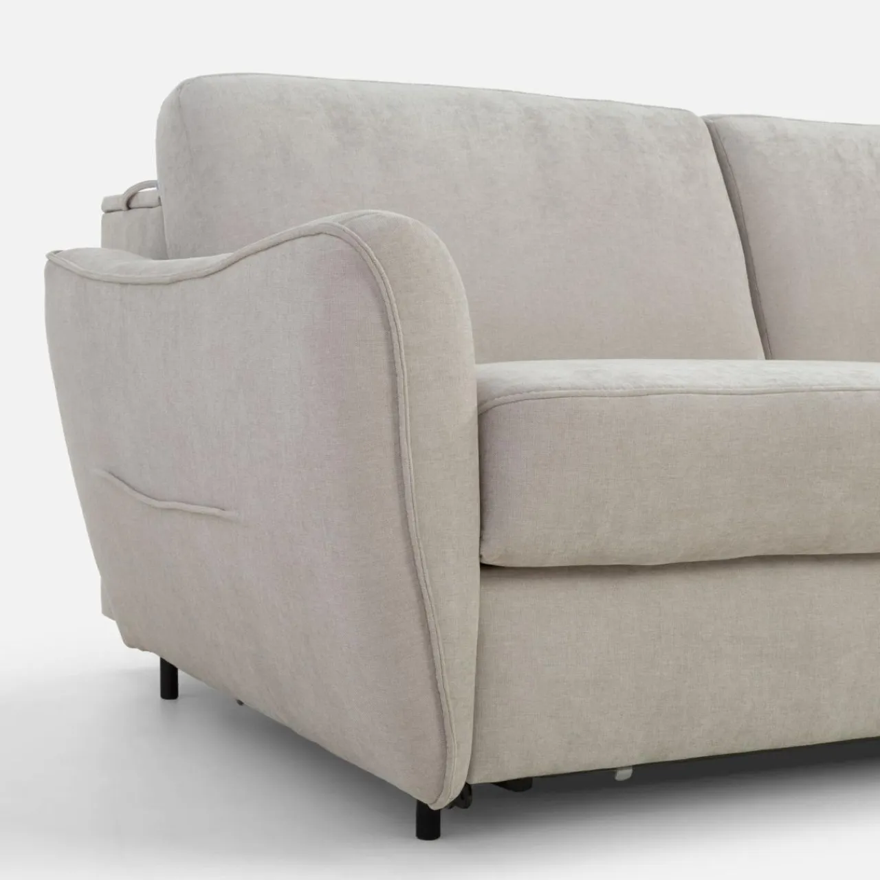 - Pociągnij uchwyt znajdujący się za sofą, by stworzyć komfortowe miejsce do spania dla Twoich gości. Powierzchnia po rozłożeniu ma wymiary 140×196 cm, dzięki czemu przenocujesz na niej 2 osoby.