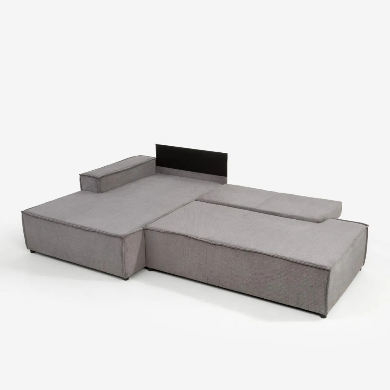 Narożnik w głębokim odcieniu ciemnej szarości doskonale sprawdzi się w nowoczesnych, loftowych lub industrialnych aranżacjach.