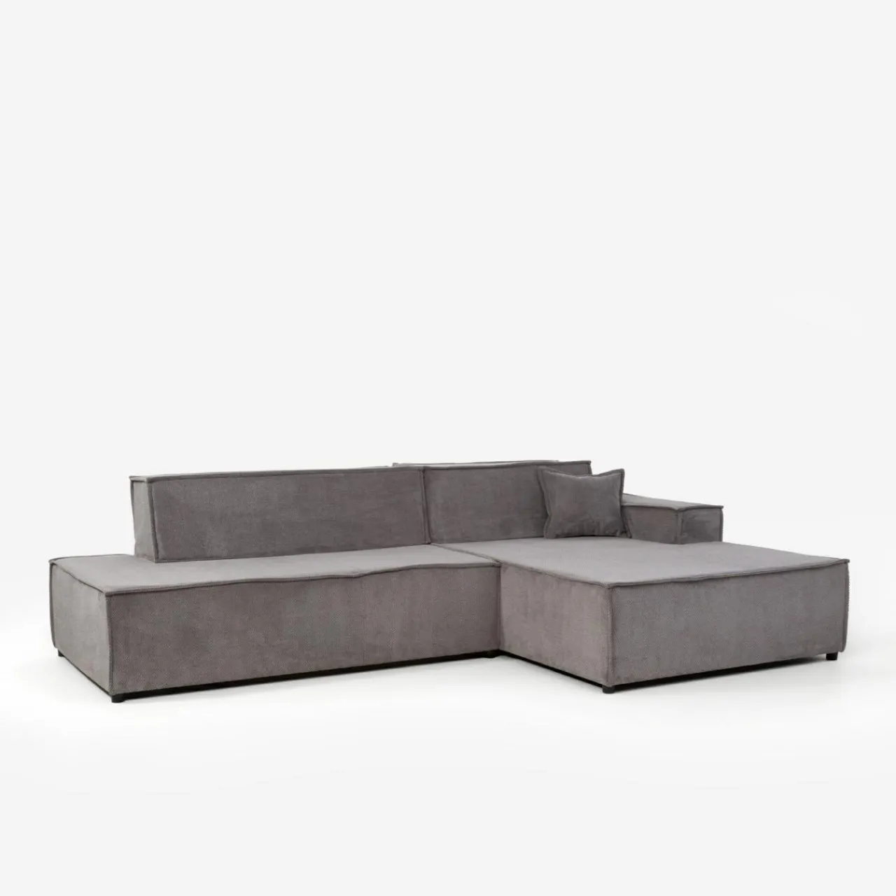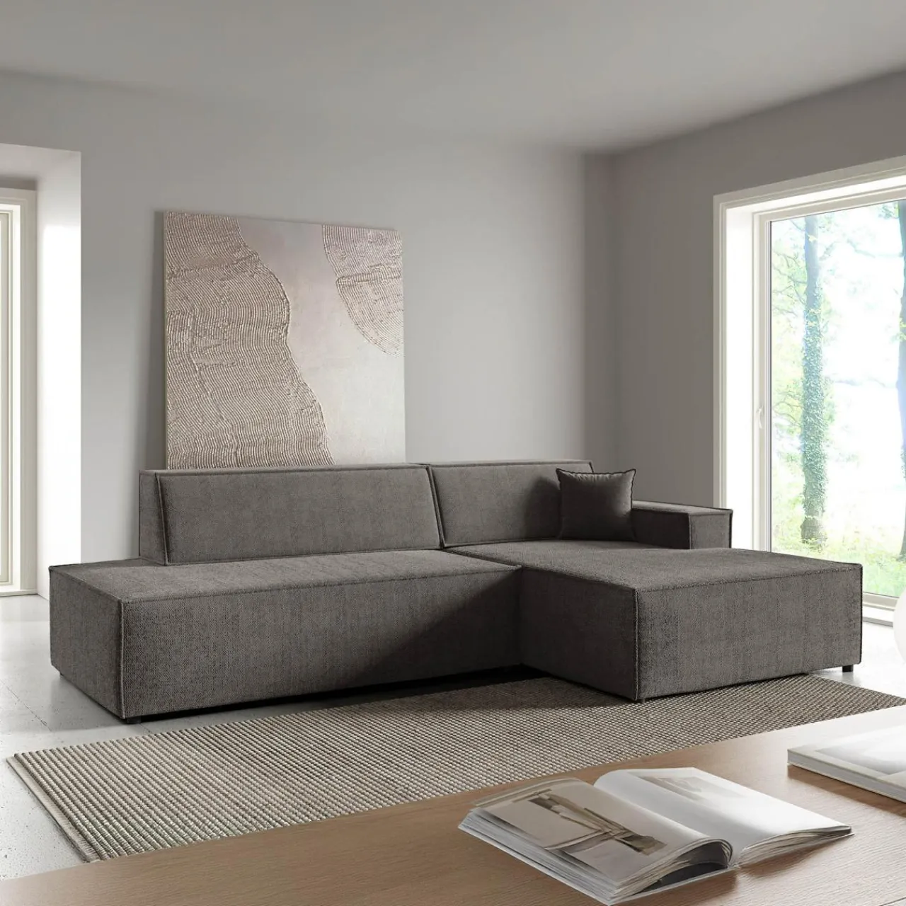 Narożnik TILIA w głębokim odcieniu ciemnej szarości doskonale sprawdzi się w nowoczesnych, loftowych lub industrialnych aranżacjach.