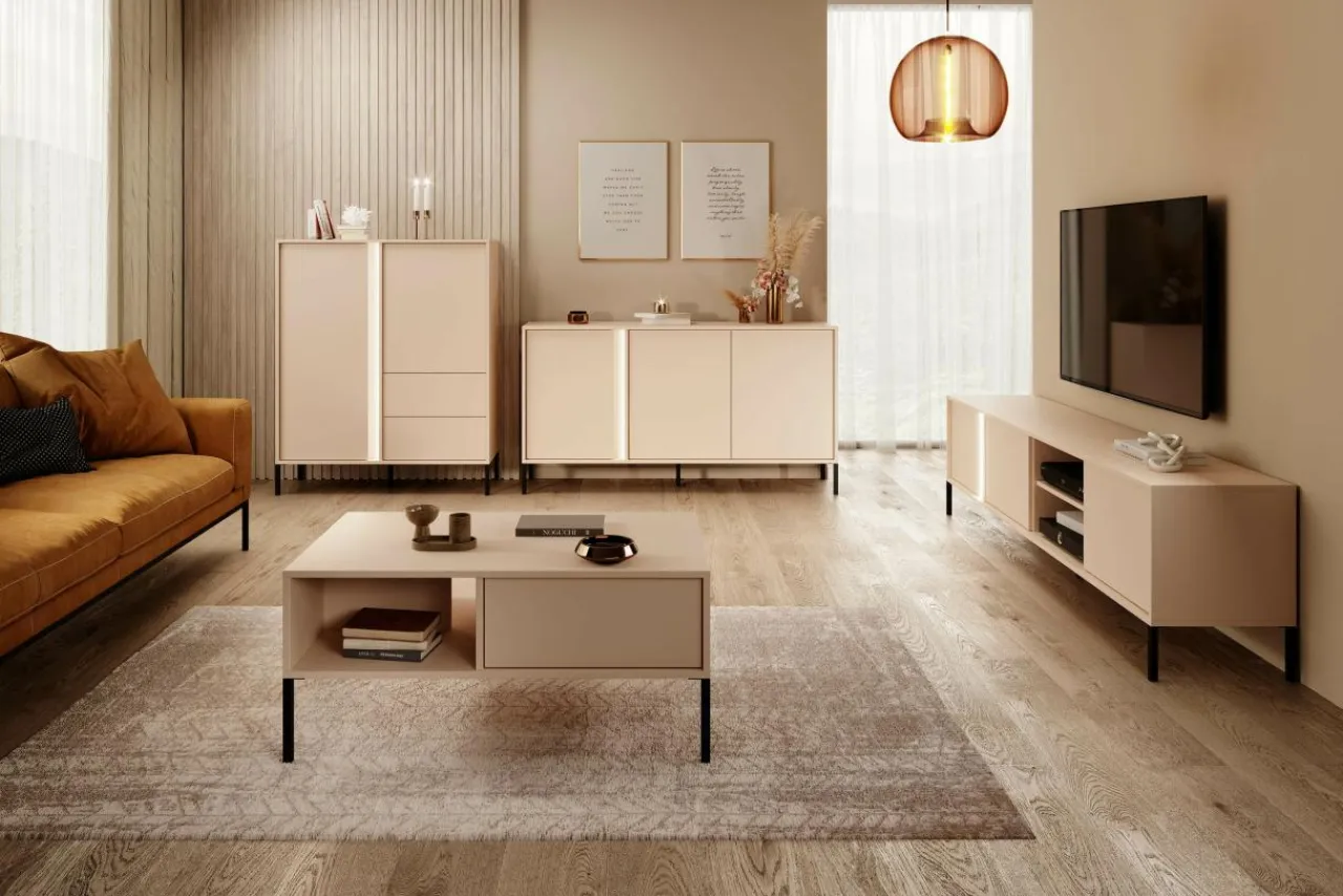Szafka RTV beżowa DAST 202,9 cm + oświetlenie