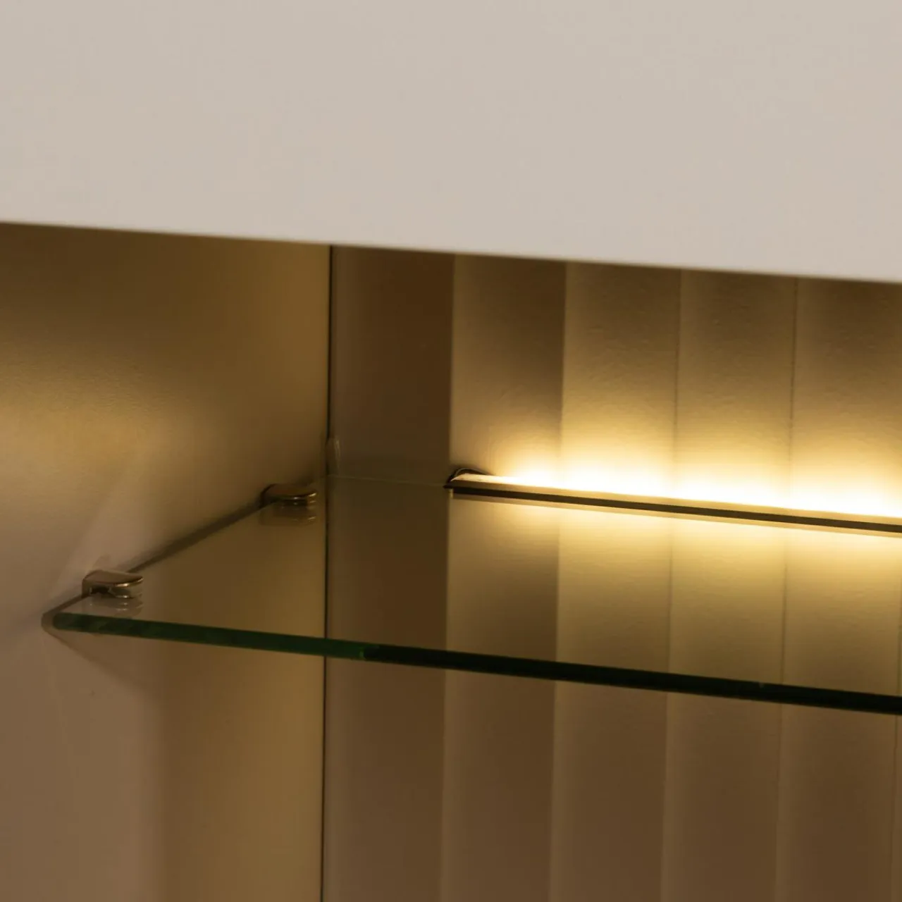 - Rozświetl wnętrze za szklanym frontem, dzięki oświetleniu LED. Delikatne światło podkreśli rzeczy schowane w środku.