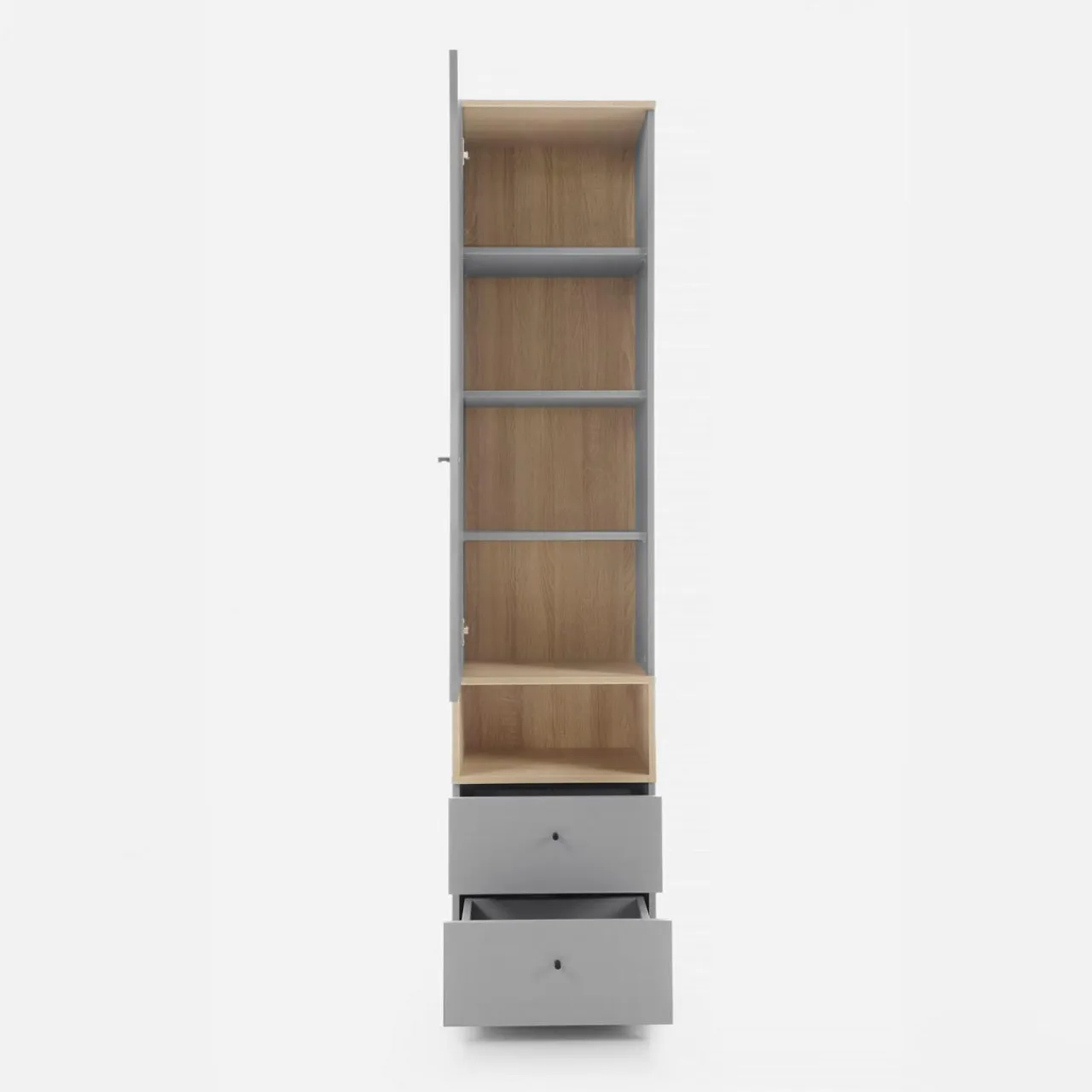 - Połączenie dębu biszkoptowego z szarym platynowym zachowuje harmonię w pokoju, zachęcając do spędzania czasu we własnym pokoju.