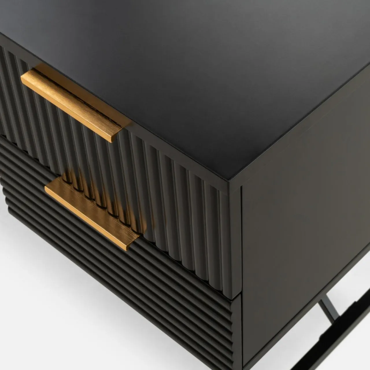 Kolekcja mebli SEVI to połączenie głębokiej czerni i złotych akcentów, które nada wnętrzu luksusowego charakteru. Proste bryły wykończone w półmacie stworzą elegancki i spójny wystrój salonu.