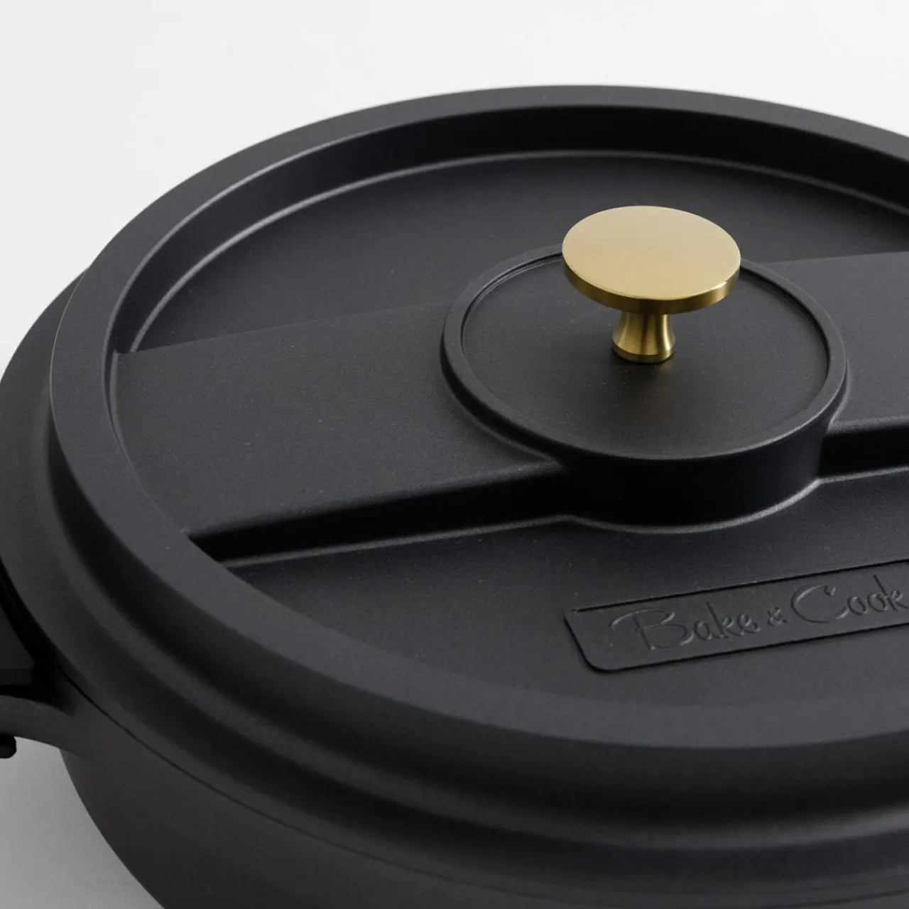 Czarna brytfanna BAKE&COOK spodoba się miłośnikom gotowania. Wykonana z lekkiego i trwałego aluminium, szybciej i równomiernie się nagrzewa, co ułatwia przygotowanie różnorodnych potraw.