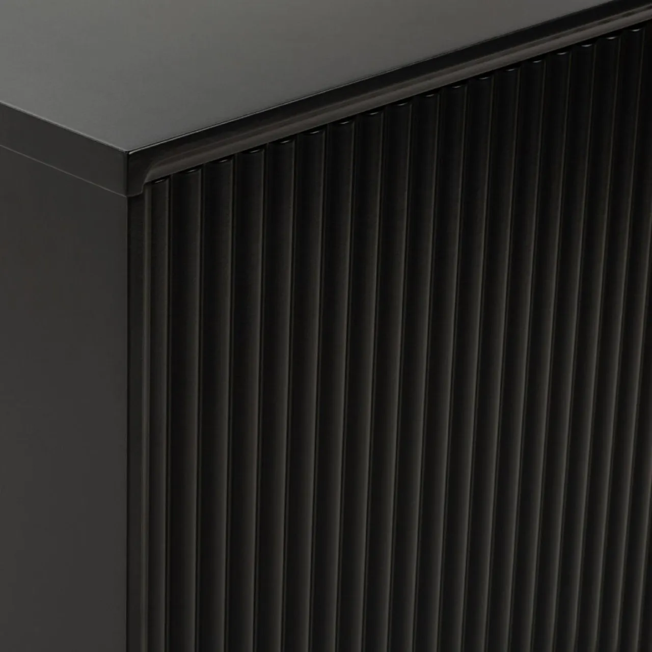 Kolekcja mebli SEVI to połączenie głębokiej czerni i złotych akcentów, które nada wnętrzu luksusowego charakteru. Proste bryły wykończone w półmacie stworzą elegancki i spójny wystrój salonu.