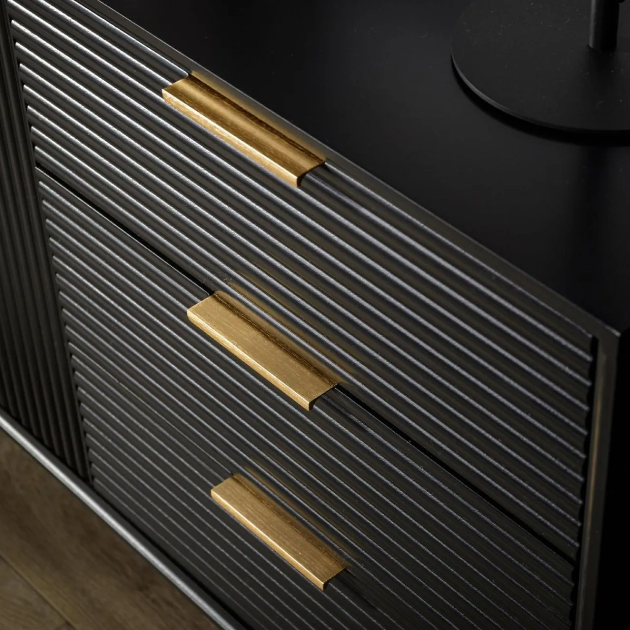 Kolekcja mebli SEVI to połączenie głębokiej czerni i złotych akcentów, które nadadzą wnętrzu luksusowego charakteru. Proste bryły wykończone w półmacie stworzą elegancki i spójny wystrój salonu.