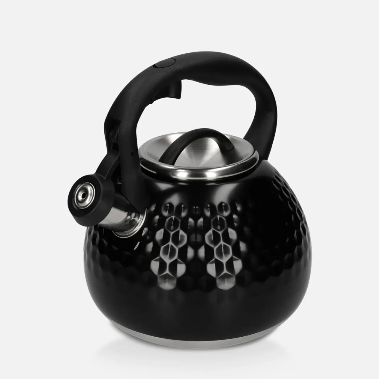 - Posiada gwizdek, który uniesiesz, naciskając na przycisk w ergonomicznym uchwycie. Wygodnie zalejesz wodą ulubiony napar.