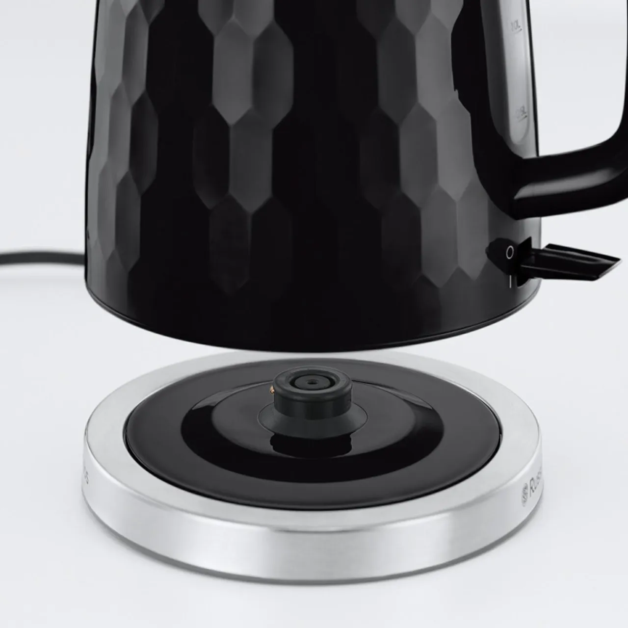 Czajnik Russell Hobbs Honeycomb inspirowany strukturą plastra miodu, połączenie czerni i stalowych akcentów sprawia, że idealnie wpasuje się w każdą kuchnię. Dzięki rozwiązaniom korzystanie z niego jest szybkie, wygodne i bezpieczne.