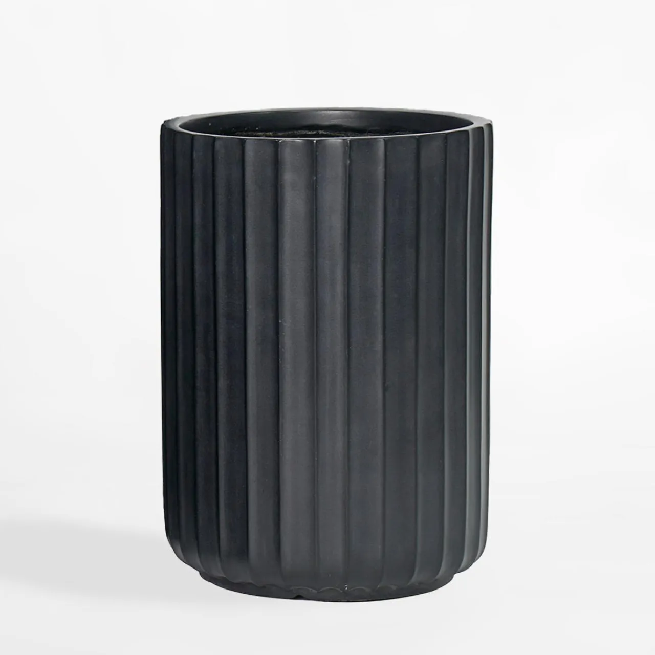 Donica ryflowana o wymiarach 42x42x57 cm w kolorze czarnym to stylowy akcent, który przyciąga uwagę wyjątkowym designem. Zachwyca teksturą, a jej smukła forma doskonale podkreśla charakter wnętrza lub przestrzeni zewnętrznej.