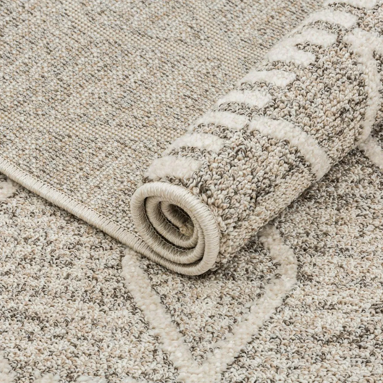 Geometryczny dywan PAULA charakteryzuje regularny wzór w romby. Świetnie odnajdzie się w boho i etno wnętrzach, w otoczeniu drewnianych mebli, roślin w doniczkach i wiklinowych koszy.