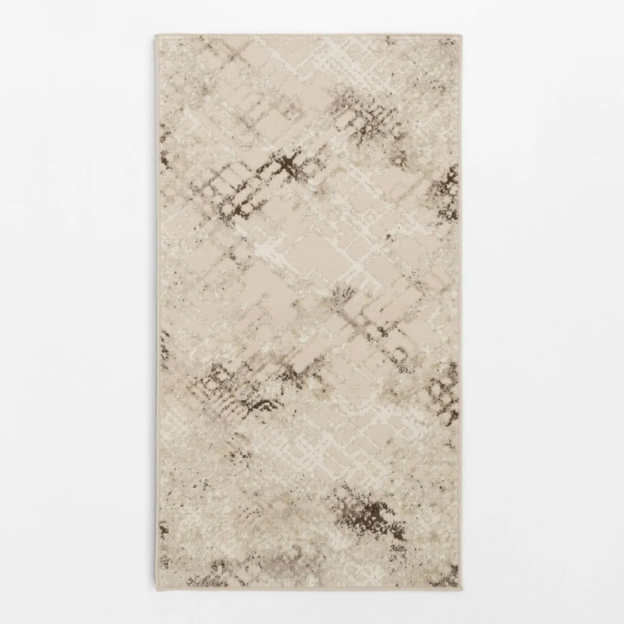 Dywan wykonano z mieszanki 60% polipropylenu i 40% poliestru – taki skład zapewnia zwiększoną wytrzymałość włókien, odporność na odgniecenia i utratę koloru.