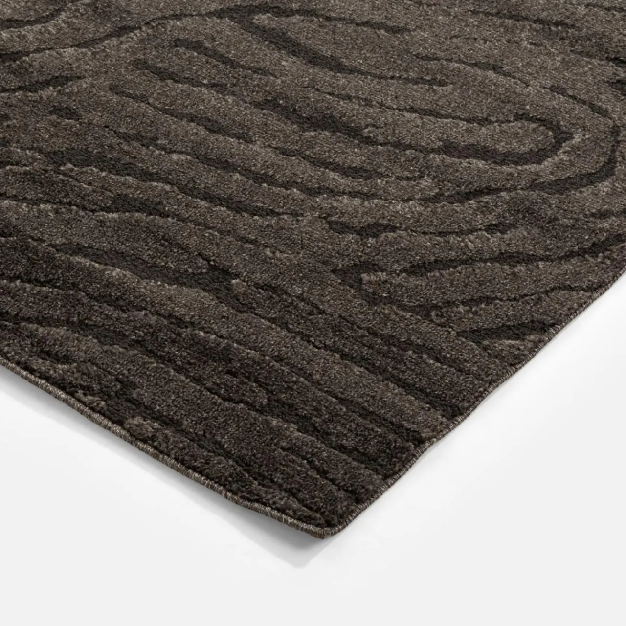 Dywan DEUS zachwyca subtelnym wzorem, który przywodzi na myśl odciski palców, delikatne fale lub piaszczyste wydmy widziane z góry. Taka inspiracja naturą nadaje wnętrzu spokojną atmosferę i stanowi stylowy akcent dekoracyjny.