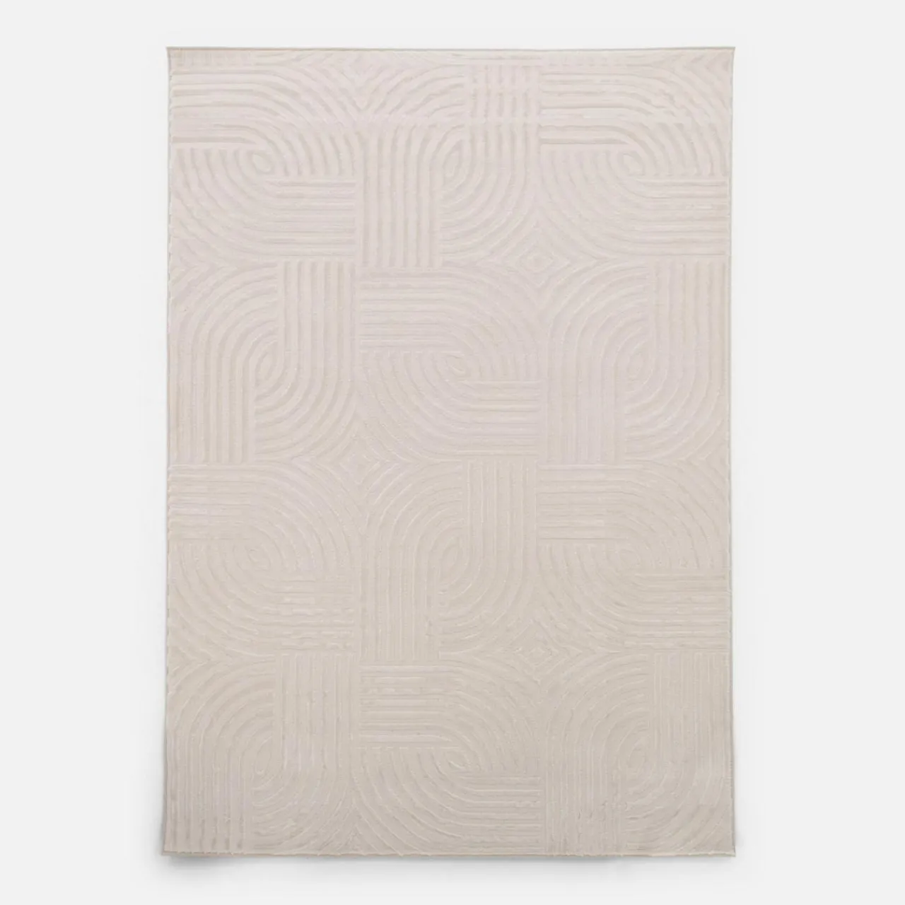 Dywan dzięki połączeniu długiego i krótkiego włosia tworzy efekt 3D mieniący się odcieniami kremu.