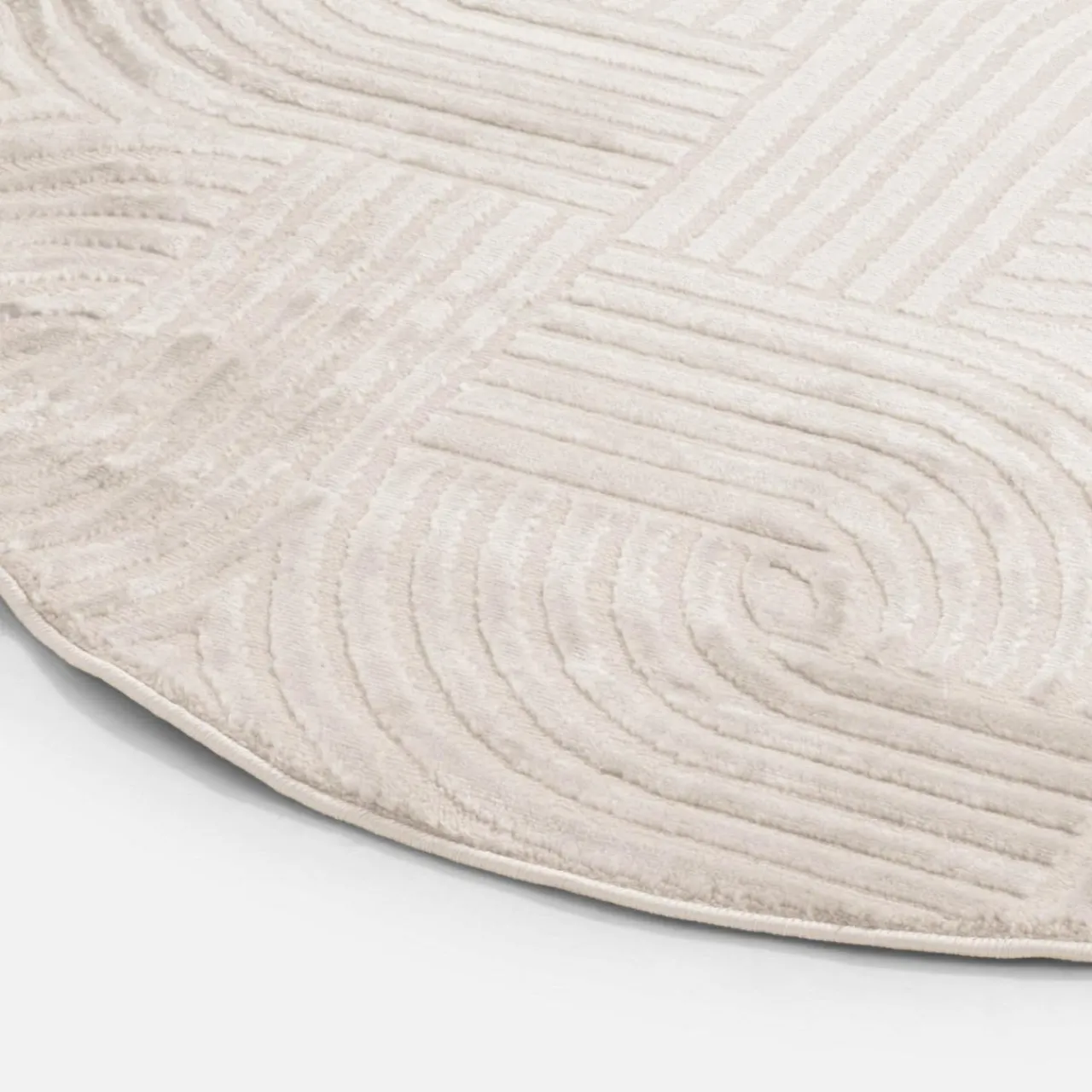 Dywan dzięki połączeniu długiego i krótkiego włosia tworzy efekt 3D mieniący się odcieniami kremu.