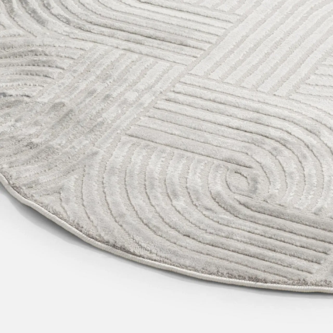 Dywan dzięki połączeniu długiego i krótkiego włosia tworzy nietuzinkowy efekt 3D mieniący się odcieniami srebra i szarości.