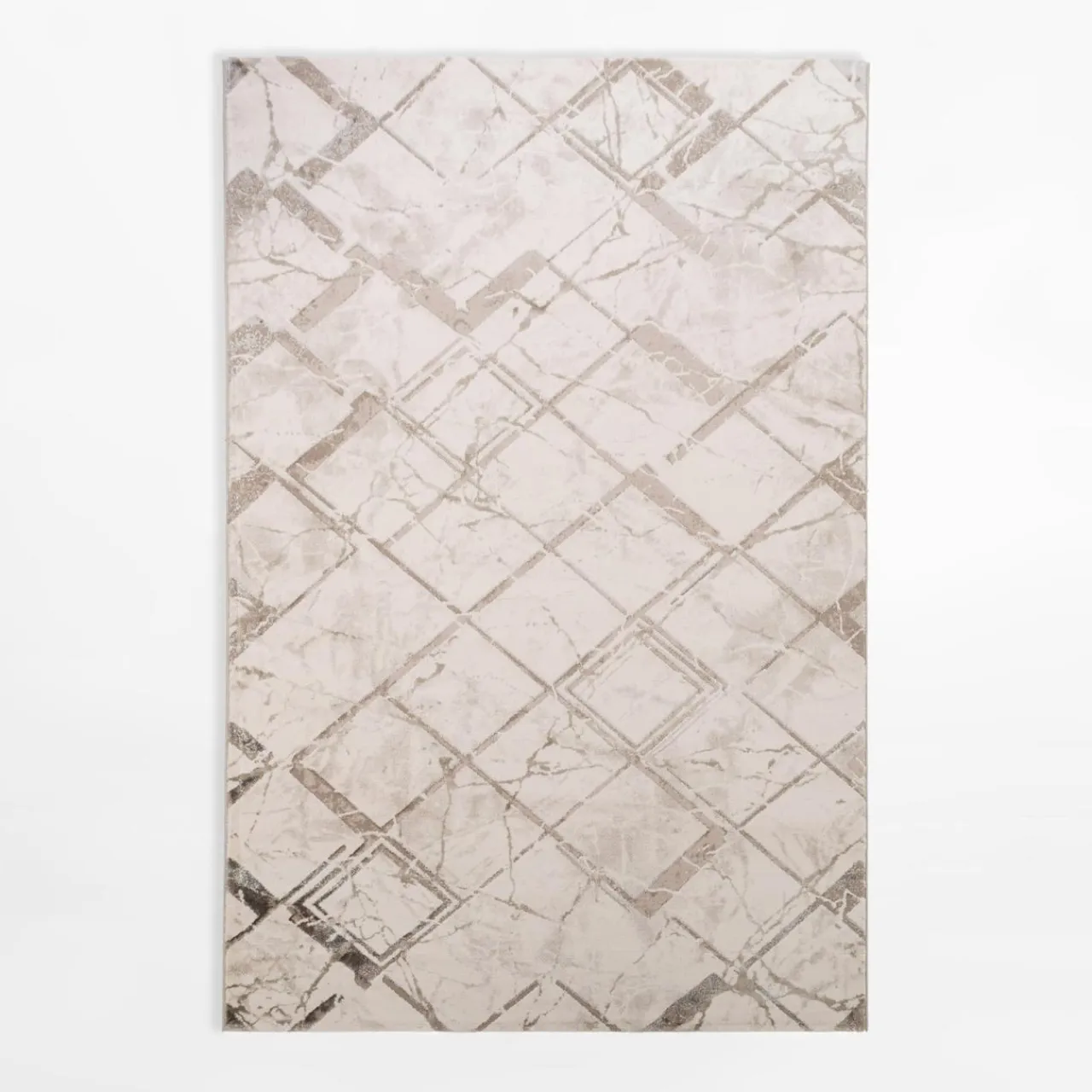 - W dywanie przeważa przyjemna, kremowa barwa. Jego linie są natomiast beżowo-srebrne.