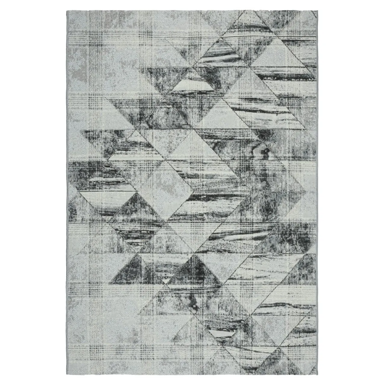 - Geometryczny wzór będący wariacją na temat trójkąta, osadzony w szarej kolorystyce, urozmaici nieco wnętrze. Jeśli lubisz minimalizm, ten dywan może być jedną z nielicznych dekoracji w Twoim holu.