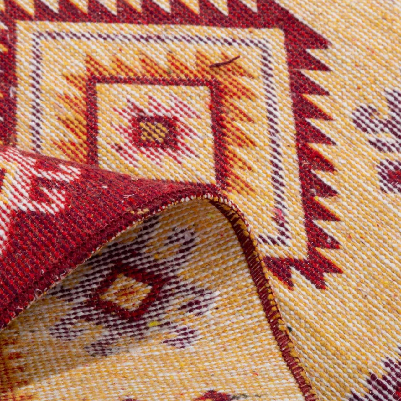 - Znajdziesz tutaj ozdobne romby i wzór oparty na motywach kwiatowych. Dywan wyraźnie zaznacza swoją obecność.