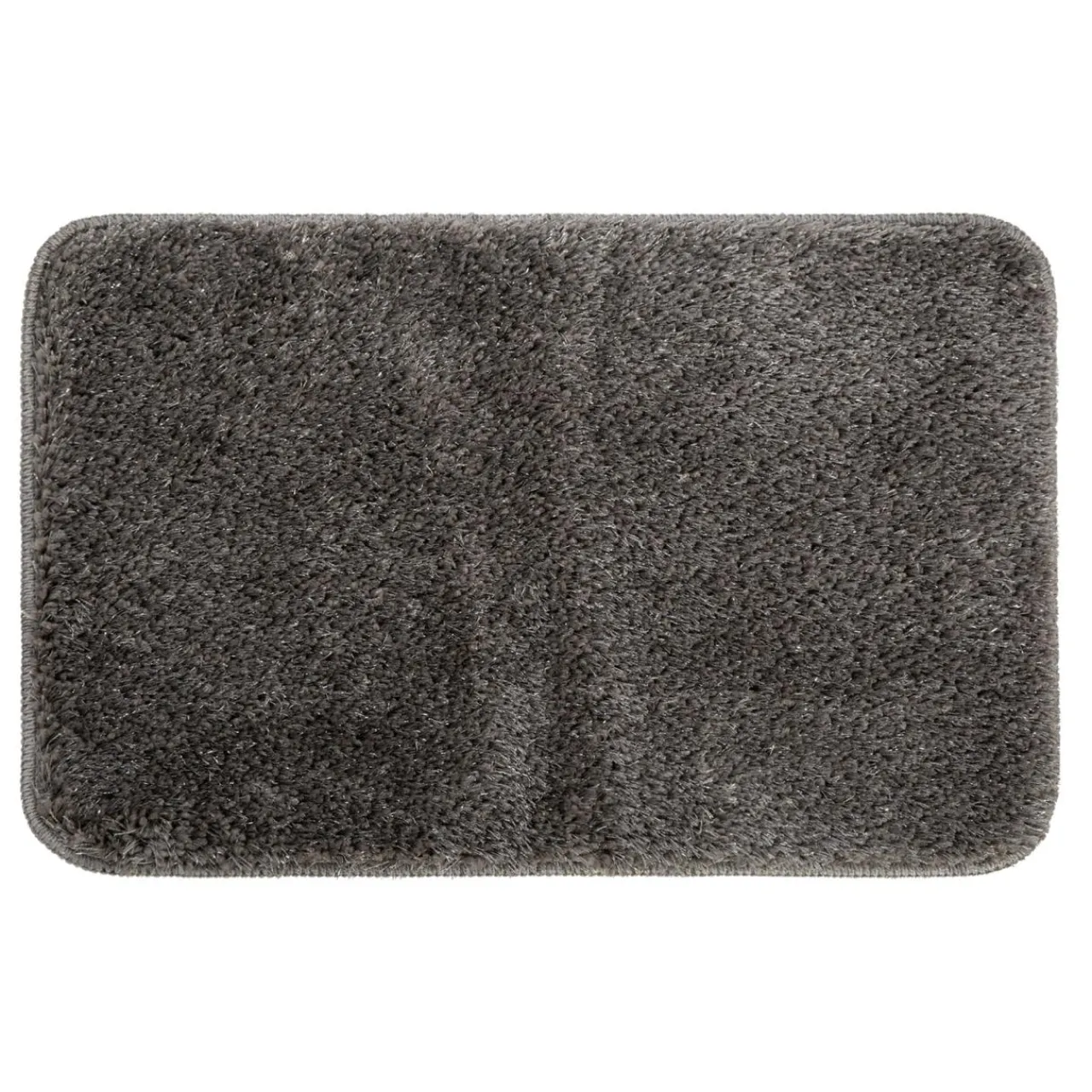 - Szary materiał przetykany jest srebrną nitką, dzięki czemu runo dywanika subtelnie połyskuje. Jeśli zależy Ci na dodatku, który wprowadzi do pomieszczenia efekt „wow”, nie zawiedziesz się, wybierając ten dywanik. Będzie pasował do nowoczesnego wnętrza okraszonego nutką glamour. Postaw na szare lub czarne płytki ścienne o wzorze marmuru i srebrne dodatki, a stworzysz aranżację spójną wizualnie.