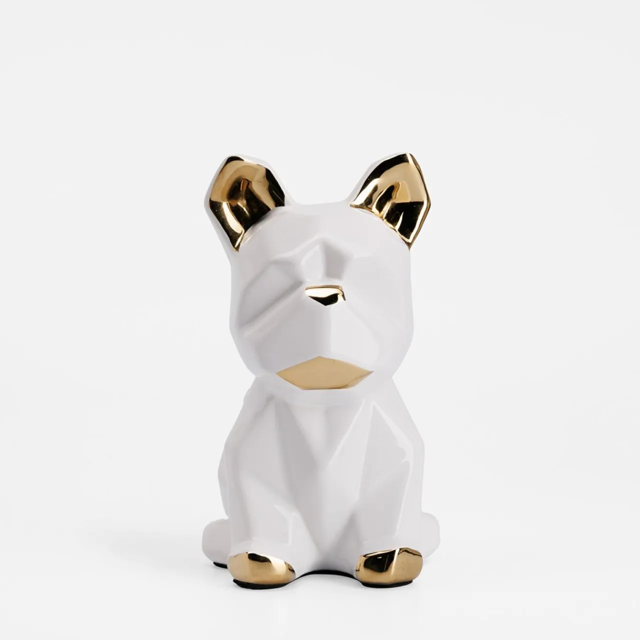 Ta elegancka figurka dekoracyjna w kształcie psa zachwyca swoim nowoczesnym i geometrycznym designem. Idealna jako ozdoba do salonu, sypialni lub biura, wprowadzi do wnętrza styl i wyrafinowanie.