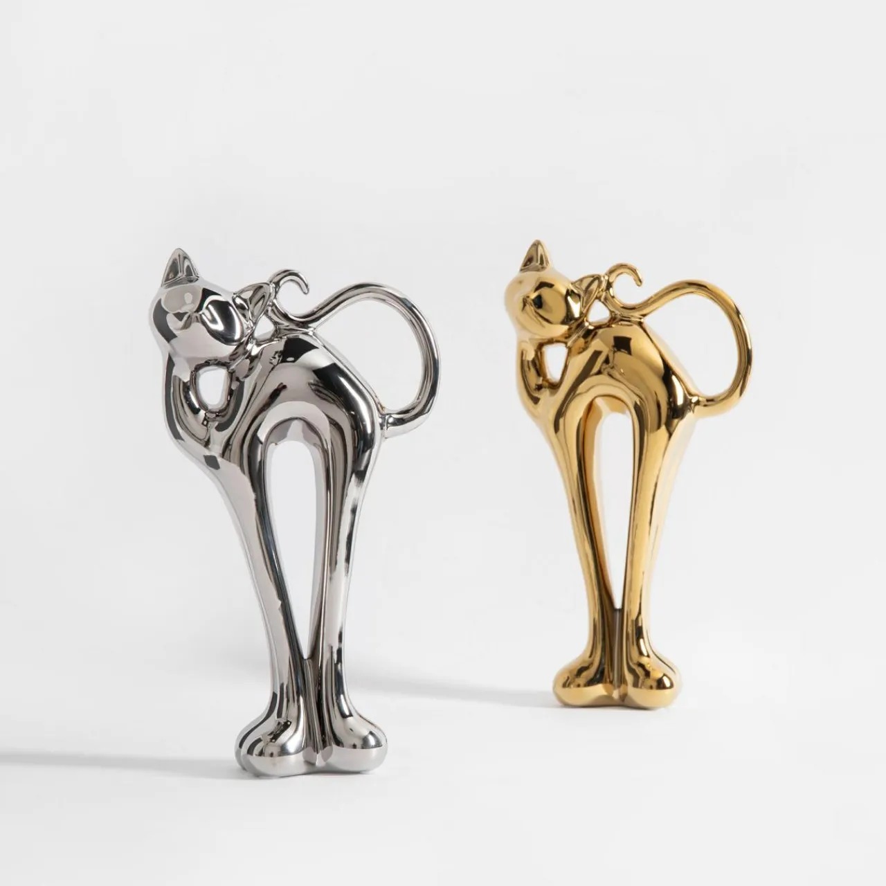 Lubisz niepowtarzalne dekoracje we wnętrzu? Figurka dekoracyjna w kształcie kota przypadnie do gustu nie tylko ich miłośnikom, ale również wszystkim, którzy lubią designerskie ozdoby. To połączenie nowoczesnego designu i klasy w stylu glamour. Świetnie sprawdzi się jako centralny element dekoracji w salonie, sypialni czy biurze.
