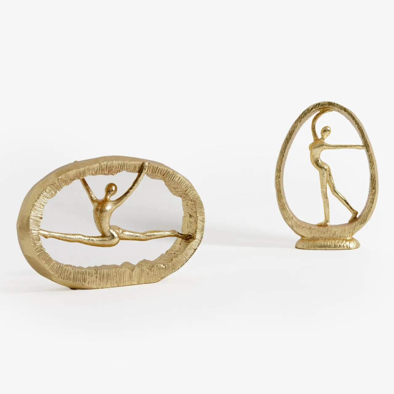 Figurka dekoracyjna gimnastyczki wykończona w złotym połysku emanuje elegancją, idealną do wnętrz w stylu glamour. Wyrzeźbione ciało oraz zaokrąglona rama nadają jej wyjątkowego charakteru. Wygięta postura tworzy wokół siebie aurę siły i harmonii z duszą.