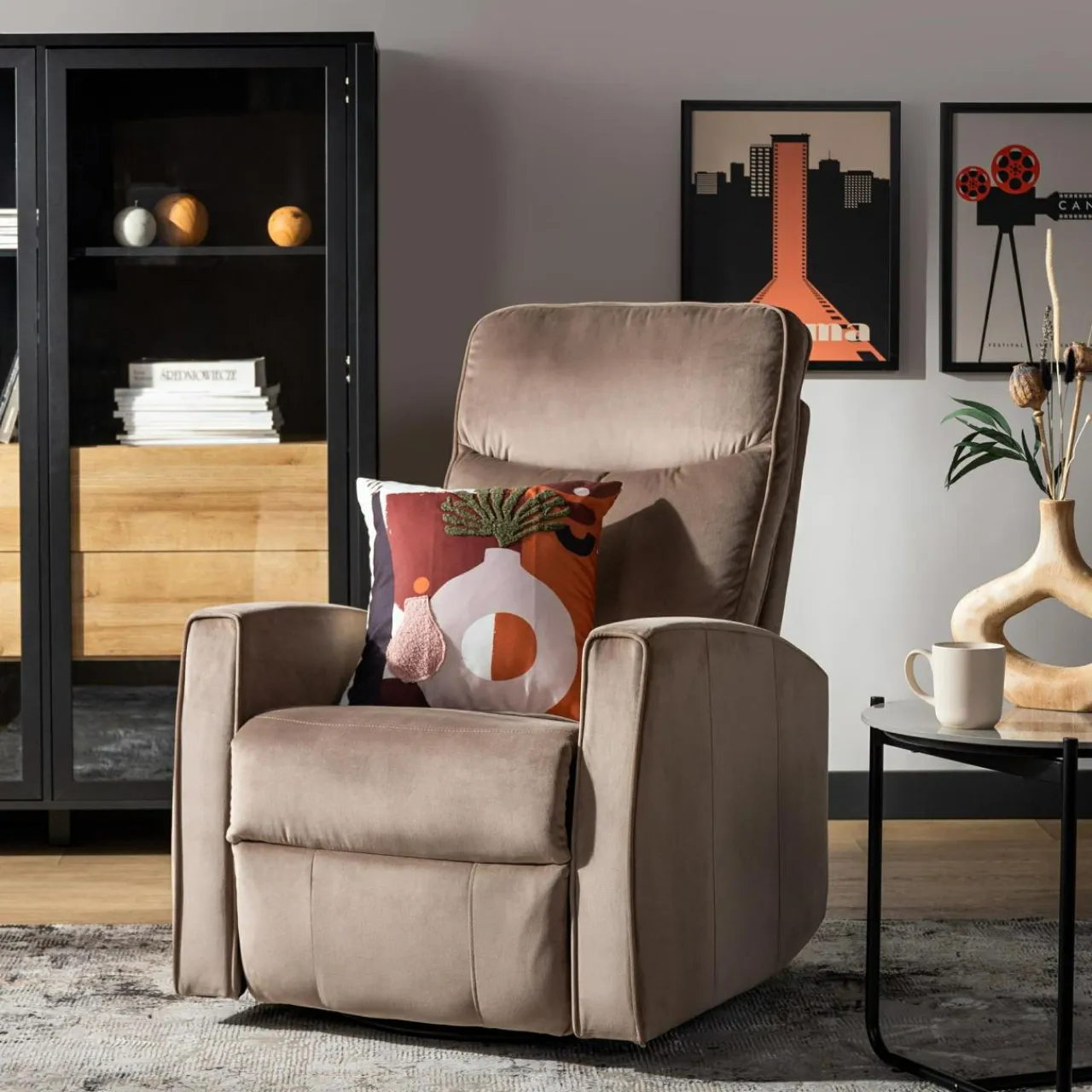 - Beżowy welur uzupełni minimalistyczny lub nowoczesny salon.