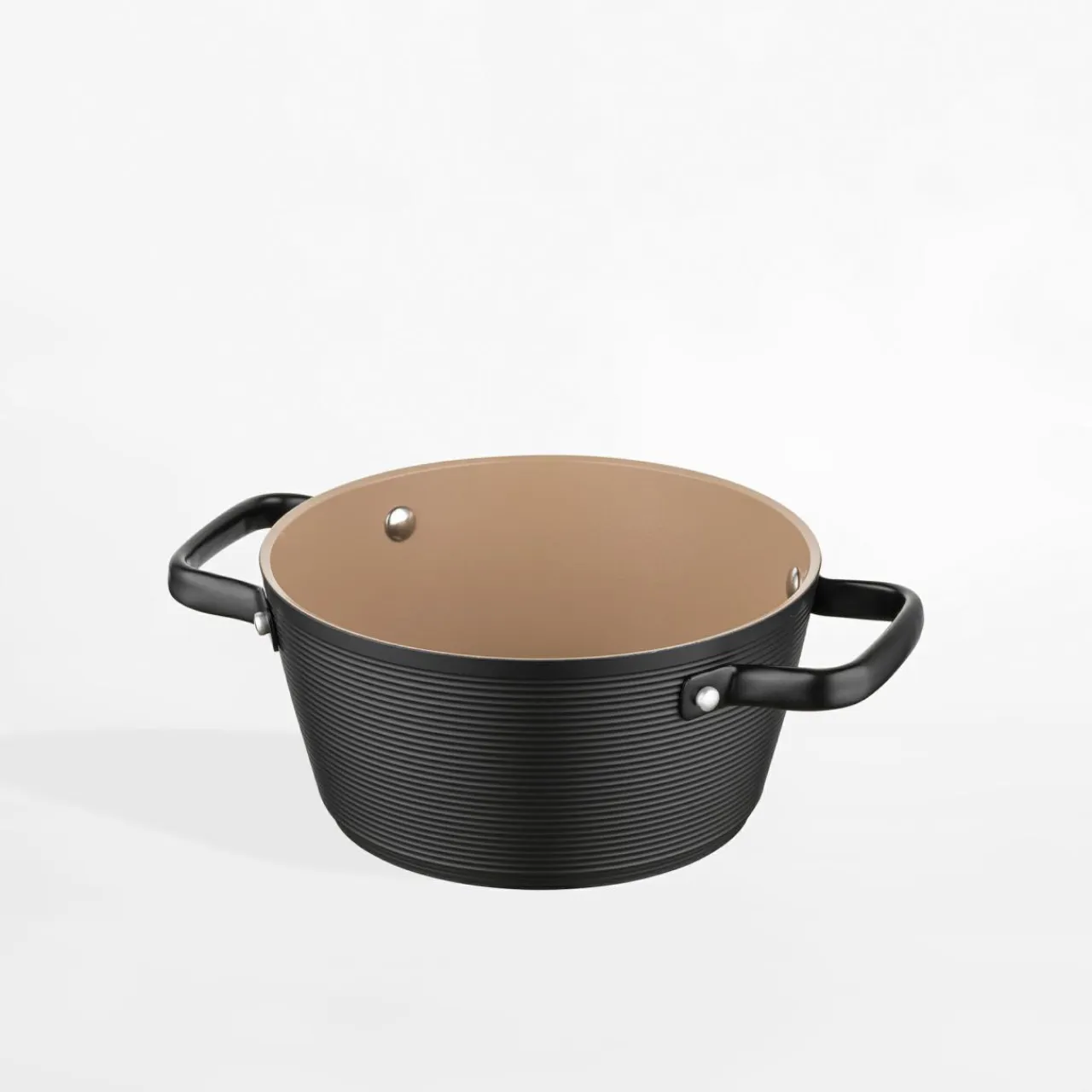 - Czarna powierzchnia zewnętrzna garnka pokryta prążkami ciekawie kontrastuje z gładkim wnętrzem w szampańskim kolorze. Połączenie tych dwóch barw wprowadzi powiew wytworności do każdej kuchni, niezależnie od jej stylu.
