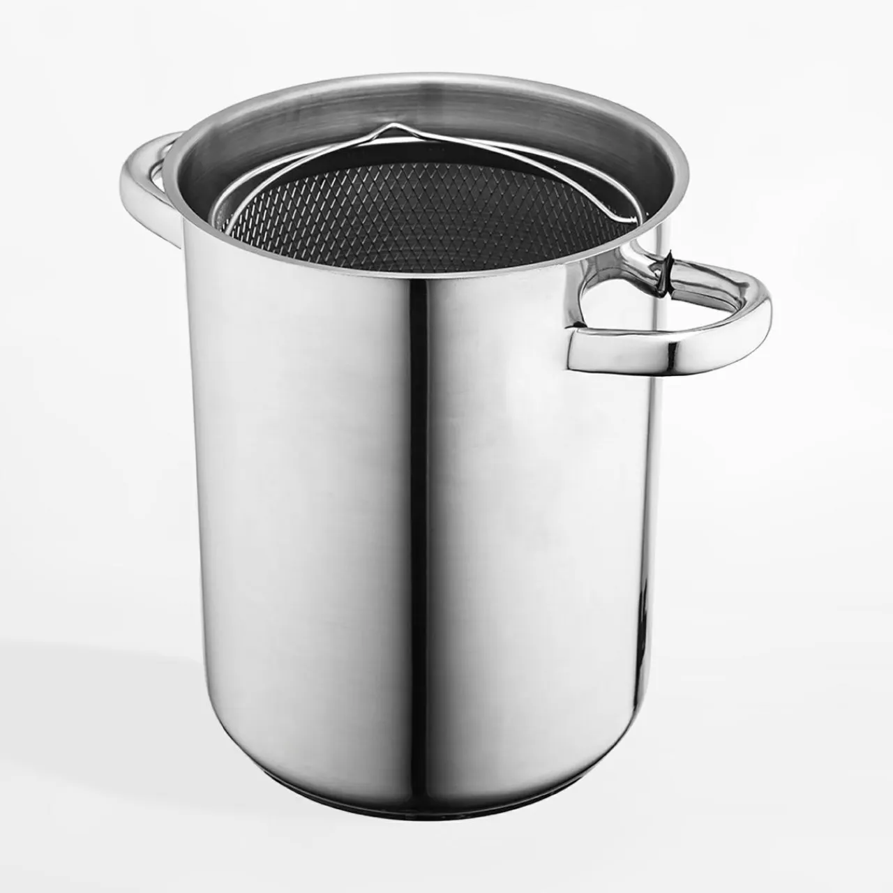 - Kosz z uchwytami ze stali nierdzewnej sprawia, że cedzenie staje się bezproblemowe.