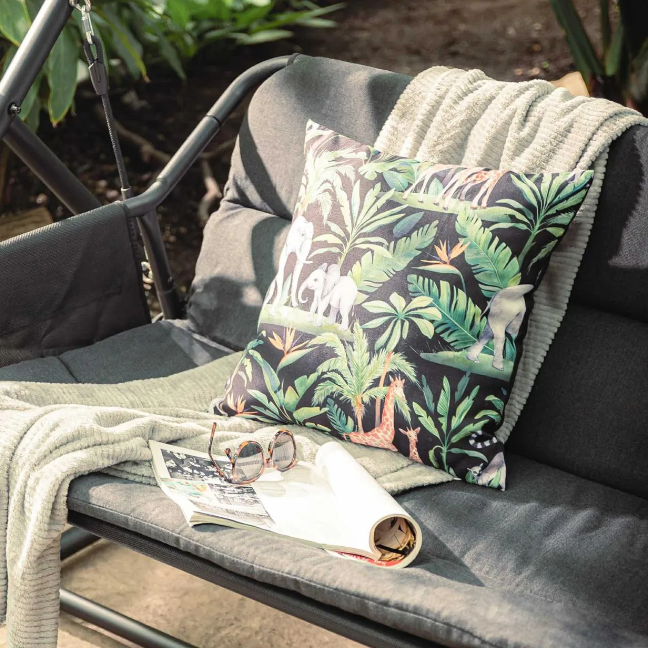 - Rozsiądź się wygodnie na miękkim siedzeniu i odepchnij nogami od ziemi. Delikatne bujanie wprawi Cię w spokój i zrelaksuje.