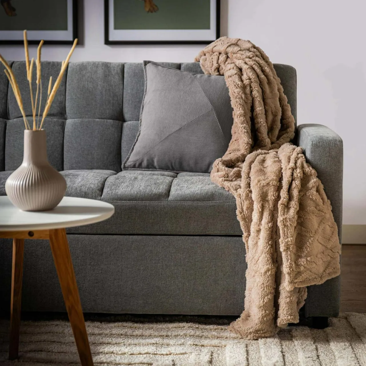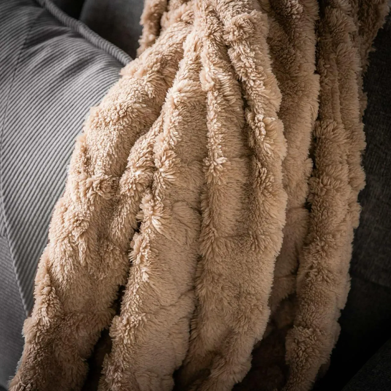 Brązowy koc NORDIC przyda się w zimowy wieczór – dzięki niemu szybciej się rozgrzejesz i zrelaksujesz.