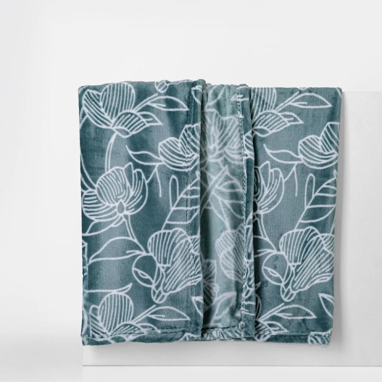 Turkusowy koc CODIE w białe kwiaty podkreśli salon lub sypialnię, w którym wypoczywasz.