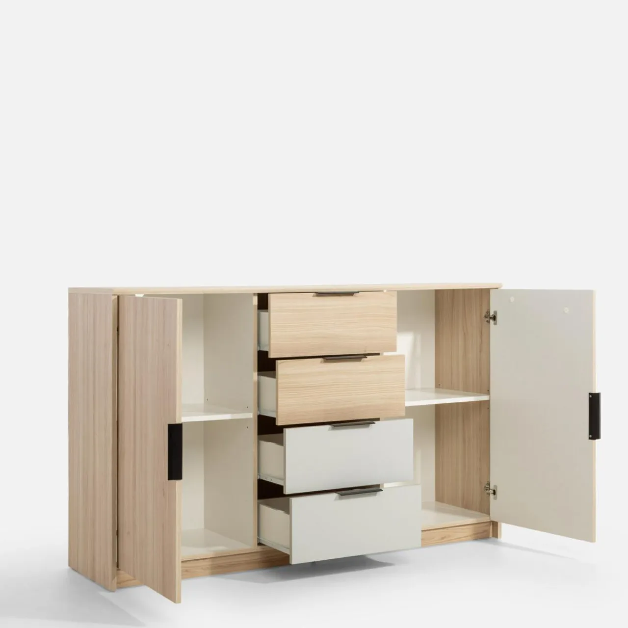 Komoda RYGA uzupełni brakujące miejsce na ubrania, tekstylia domowe czy inne drobne przedmioty. Każda rzecz będzie w osobnej wnęce lub szufladzie, dlatego bez problemu znajdziesz to, czego potrzebujesz.