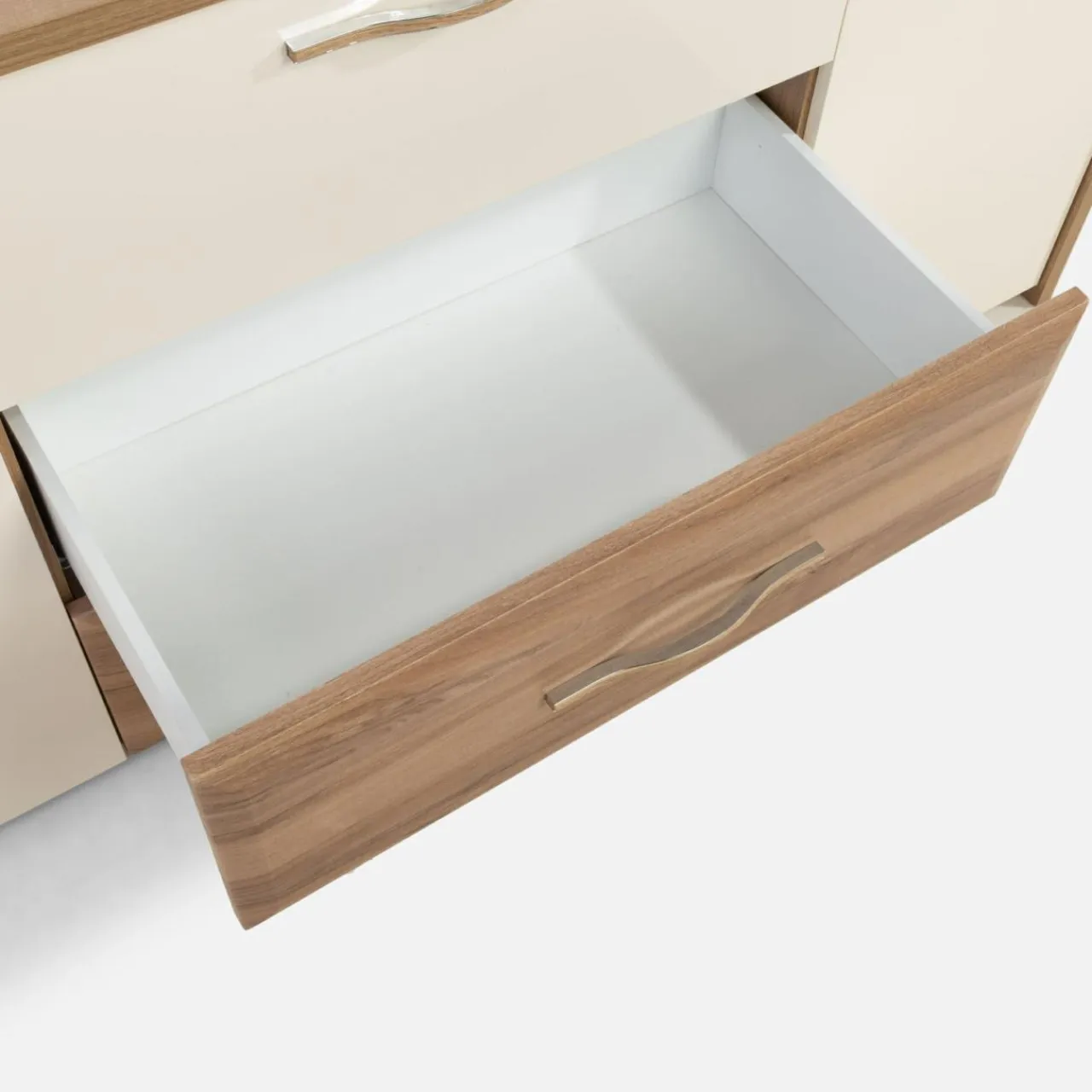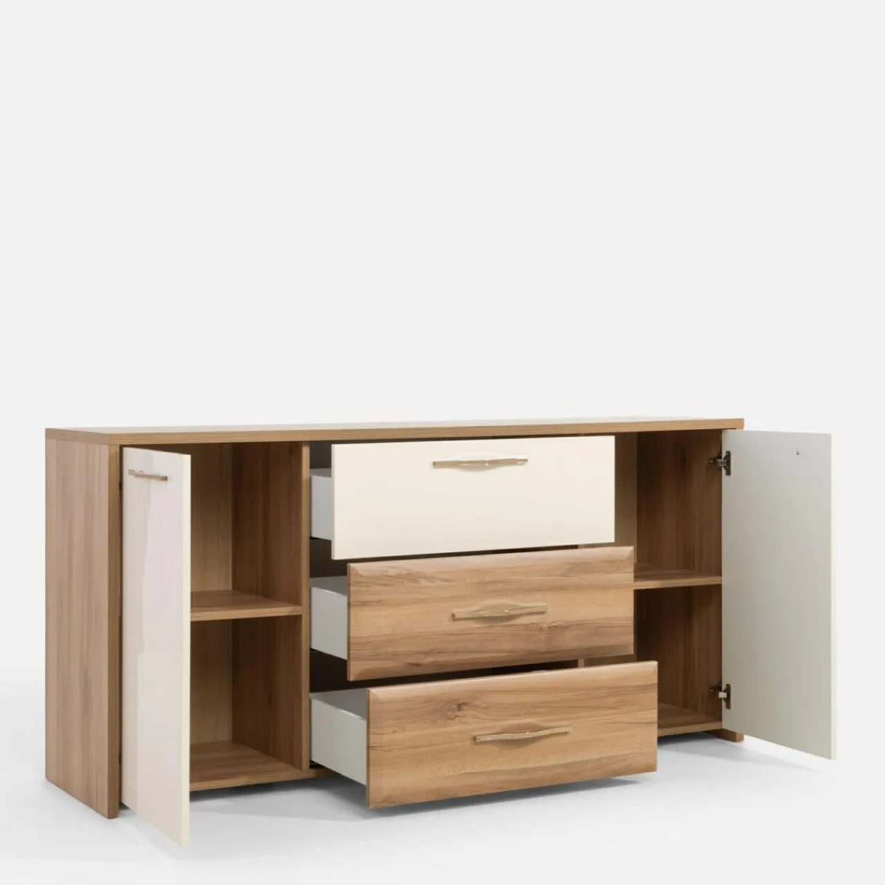 - 2 drzwi i 3 szuflady – różnorodna przestrzeń do przechowywania, idealna na ubrania, dokumenty lub akcesoria.