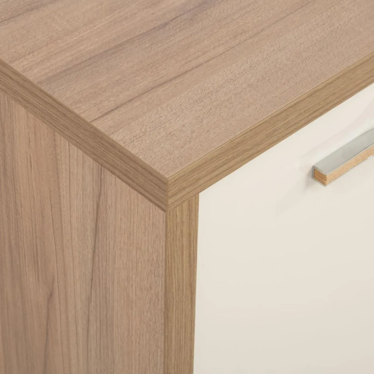 Kolekcja GALA łączy kolory jasnego drewna i beżu z wykończeniem na wysoki połysk, tworząc subtelną i elegancką atmosferę, idealnie pasującą do nowoczesnych czy minimalistycznych wnętrz. Dzięki tej kolekcji łatwo można zagospodarować przestrzeń, dodając dekoracje, które nadadzą jej unikalnego stylu. Szklane wazoniki, metaliczne ramki, stonowane tekstylia i rośliny to dodatki, które doskonale podkreślą nowoczesny charakter wnętrza, tworząc przytulną atmosferę sprzyjającą relaksowi i spotkaniom.