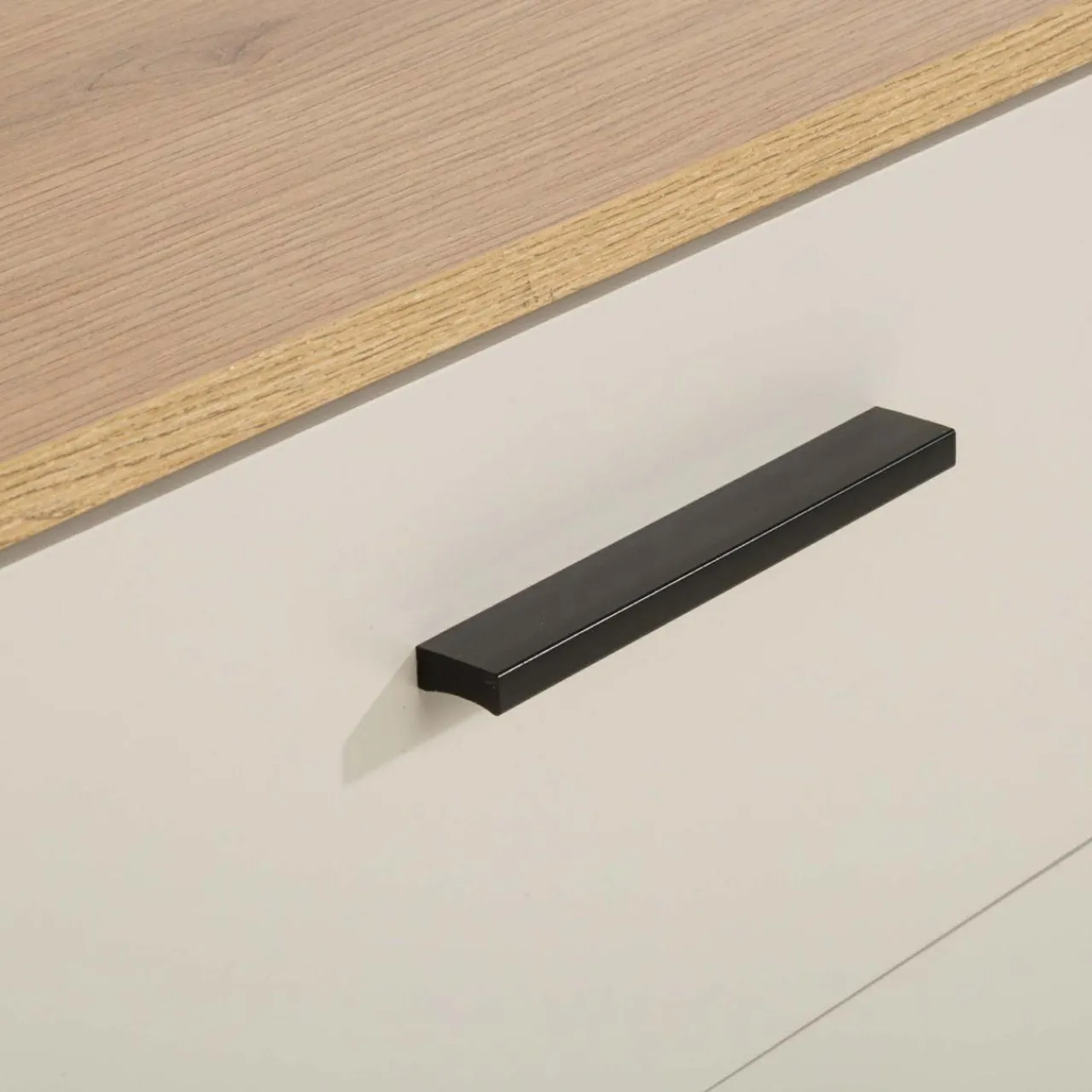 - Wykończenie w kolorze kaszmiru wprowadza elegancję i neutralność. Elementy z rysunkiem dębu evoke nadaje wnętrzu przytulny, naturalny akcent.