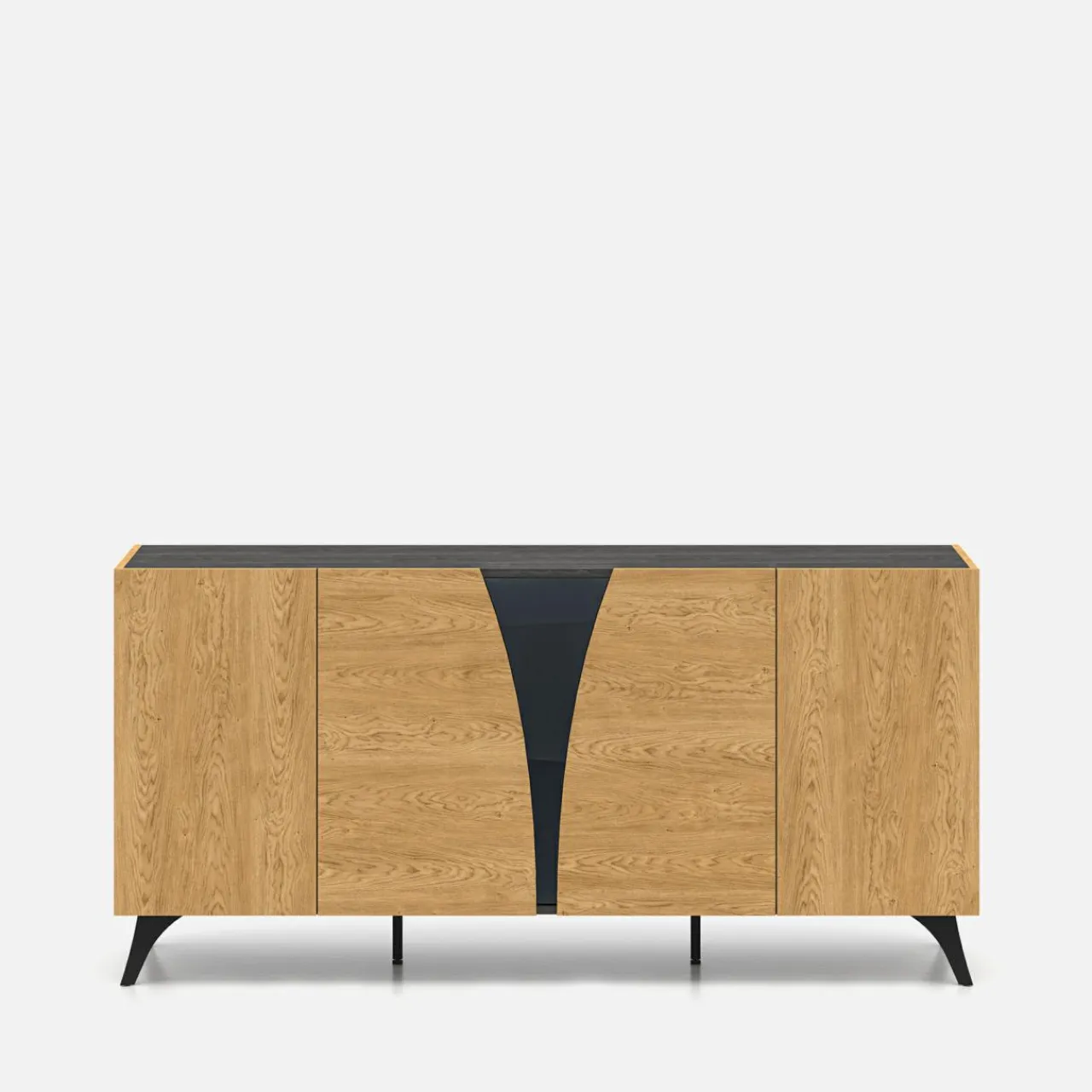 - W miejscu wyciętych frontów wstawiono czarne szkło. Ten ciekawy akcent dodaje elegancji i przyciąga uwagę nietypowej zabudowy.