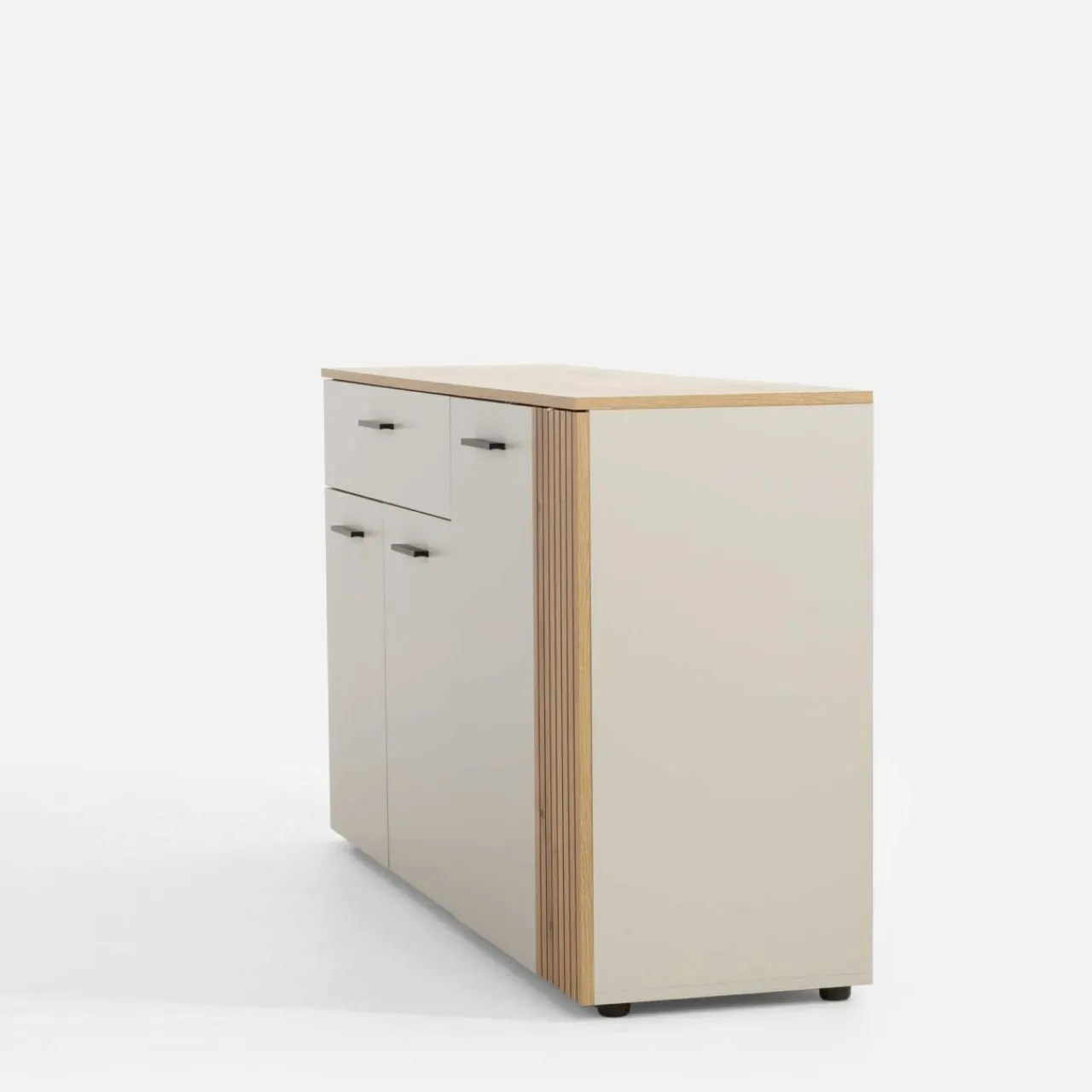 Zachowaj codzienny porządek w części jadalnianej z komodą FREZO. 2 szafki i szuflada pozwolą szybko znaleźć potrzebny przedmiot.