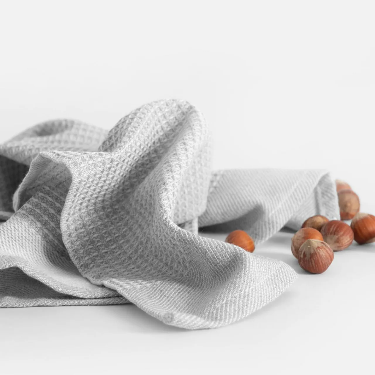 - Jasnoszare ręczniki kuchenne pasują do białych lub kremowych mebli.