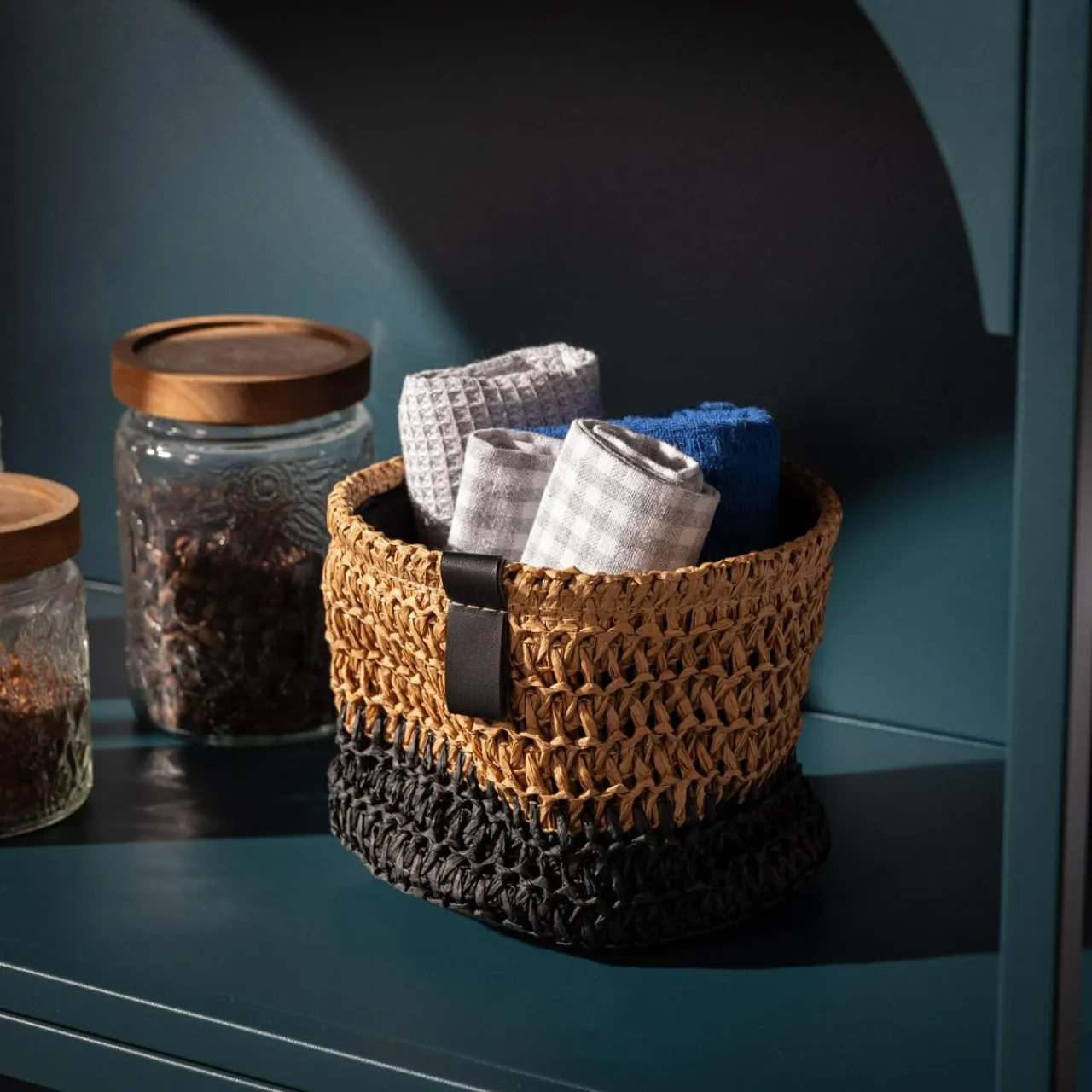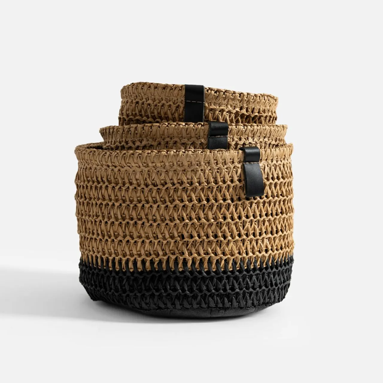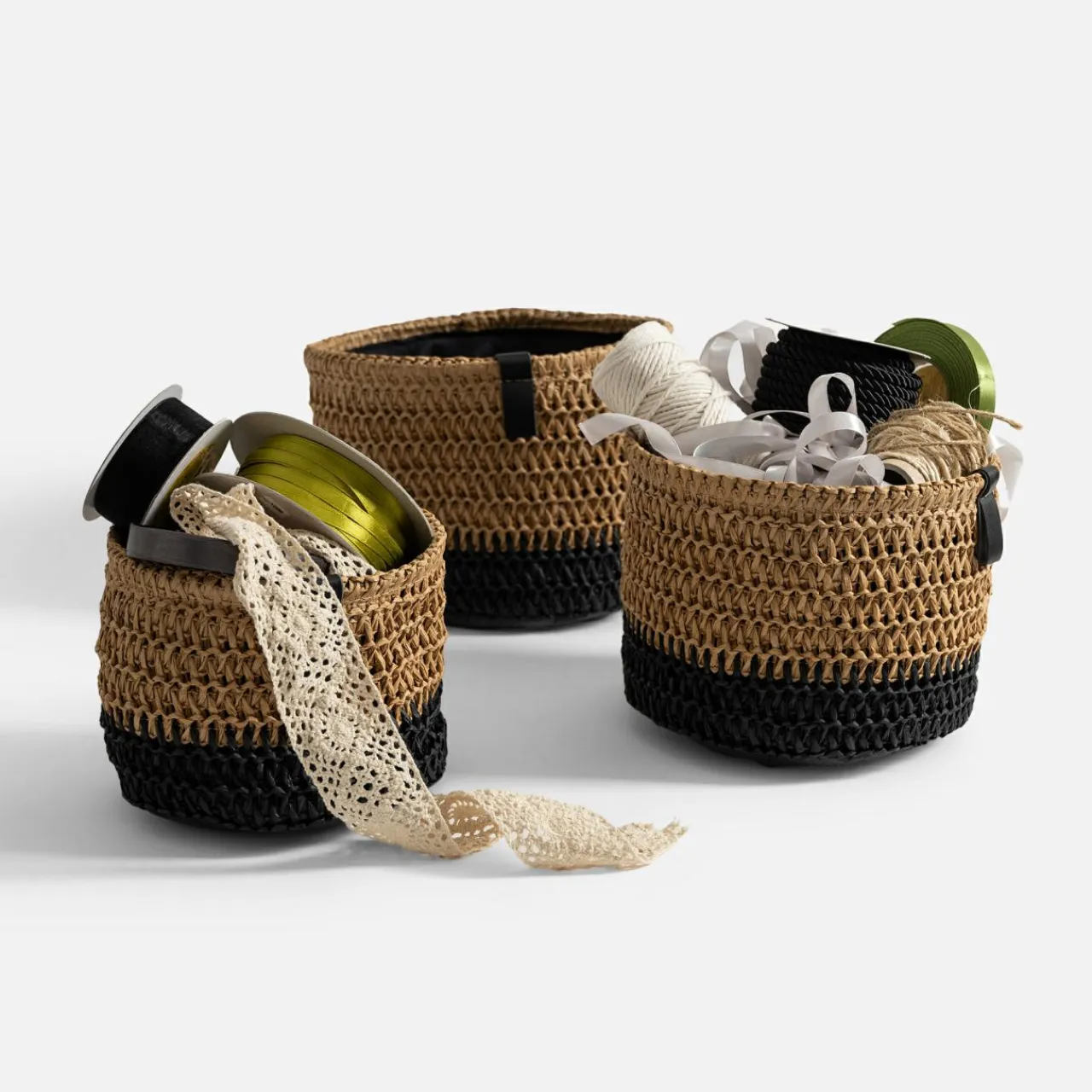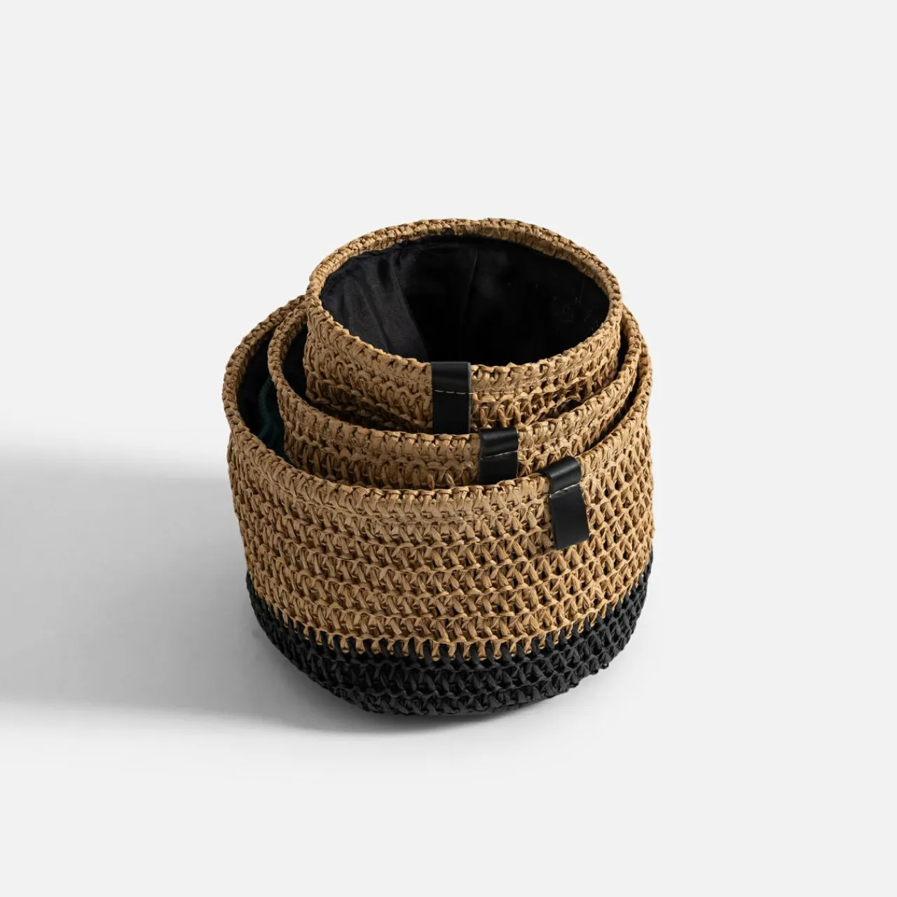 inny Komplet 3 koszy do przechowywania okrągłe brązowo-czarny